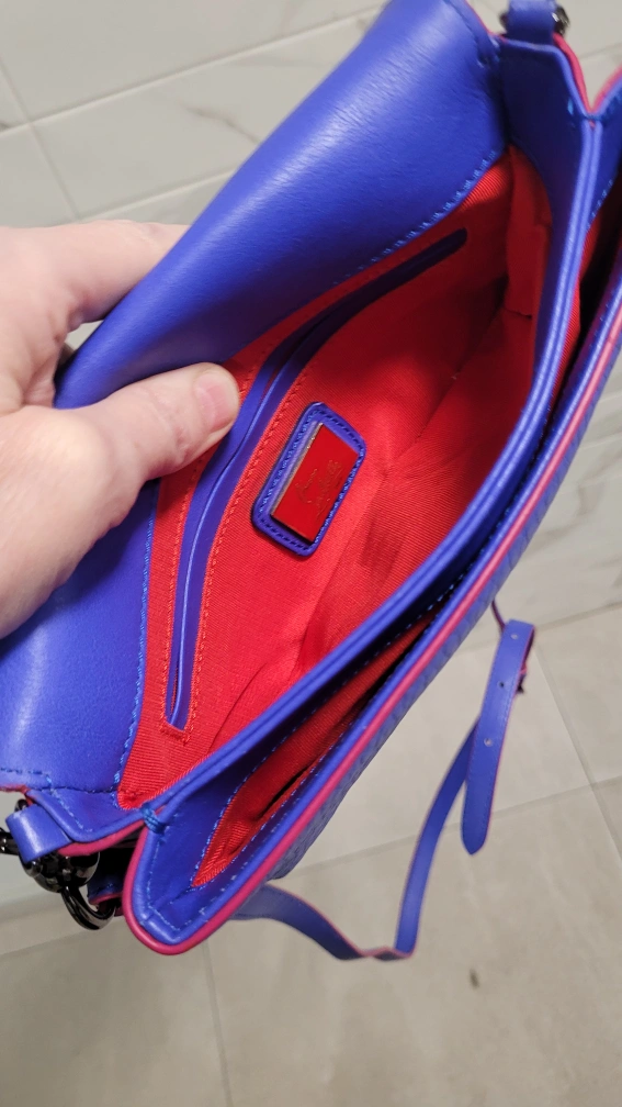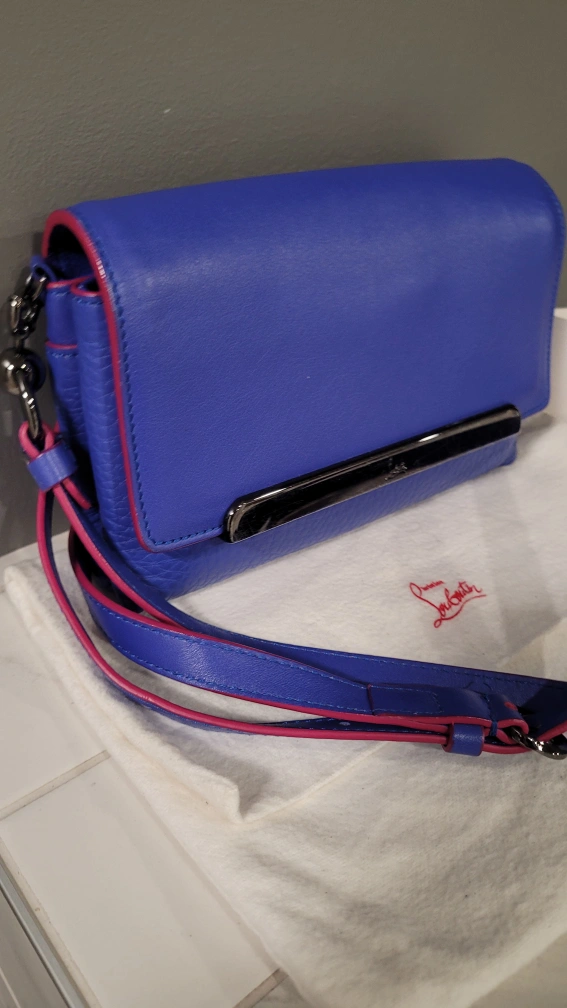 484Authentic Louboutin purse with detachable strap everything is excellent except some scratches and bit of fading on 1 panel of hardware. With dustbag and cards.