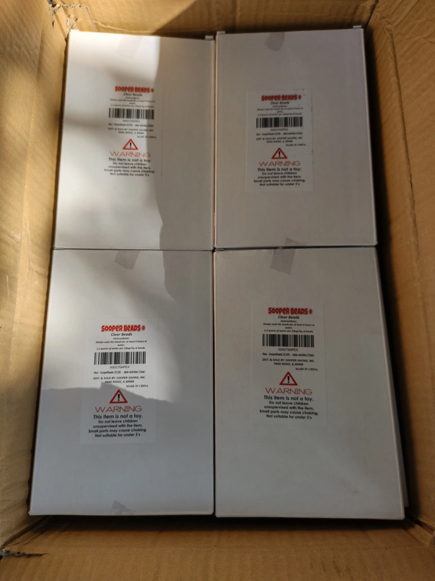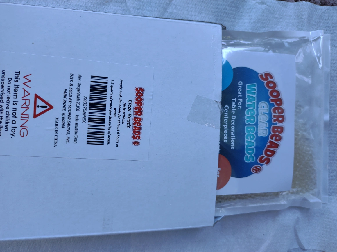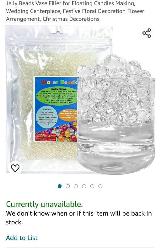 44Non-toxic, eco-friendly, reusable. Great for table decorations, centerpieces, floral arrangements, watering plants. Jelly beads vase filler for floating candles making, wedding centerpieces, festive floral decoration flower arrangement, decorations. each box is 20,000 beads. $3 each if you take all I can do $2 each.
