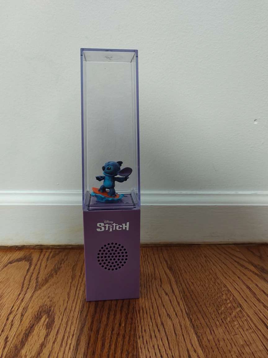 Purple Bluetooth speaker with Stitch figurine inside. Features a speaker on the front and a small switch on the back. Barely used. Like new condition #freecycle