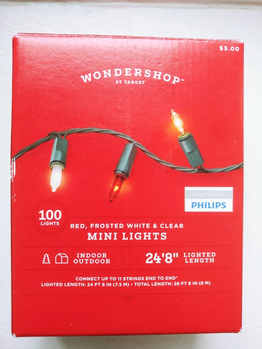 Indoor and outdoor mini lights. Connect up to 11 strings end to end. Lighted length: 24 ft 8 in. Total length: 26 ft 6 in.