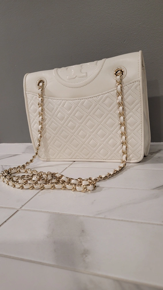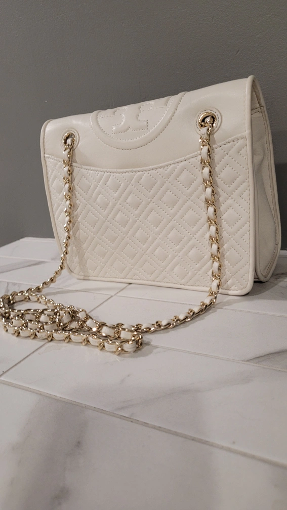 484Authentic Tory Burch cream flap chain bag. in good condition.