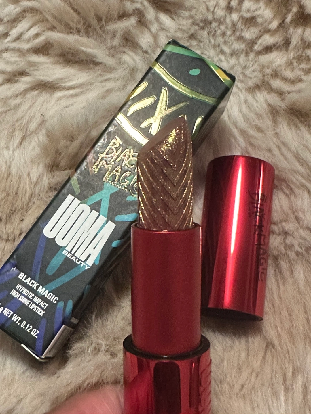 68UOMA Beauty lipstick in shade Black Magic. Hypnotic impact high shine lipstick. Shade - Love #ThriftyPicks