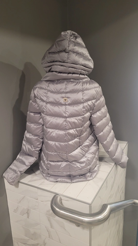 484Silver puffer jacket with a hood. Zipper closure. Has pockets on the sides. authentic 💯