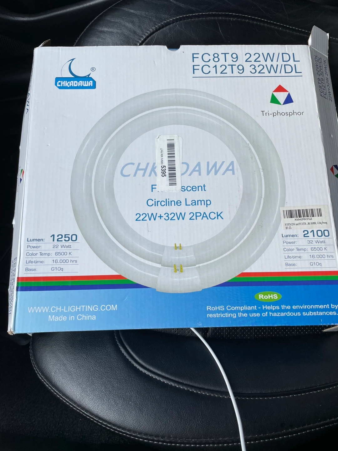 Two pack of fluorescent circline lamps. 22 watt and 32 watt. Brand new in box.