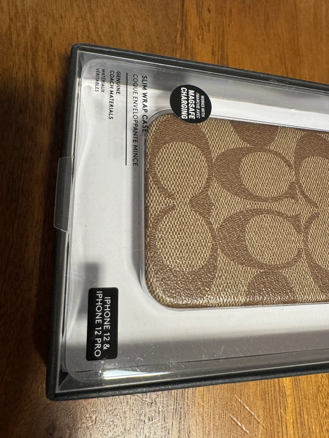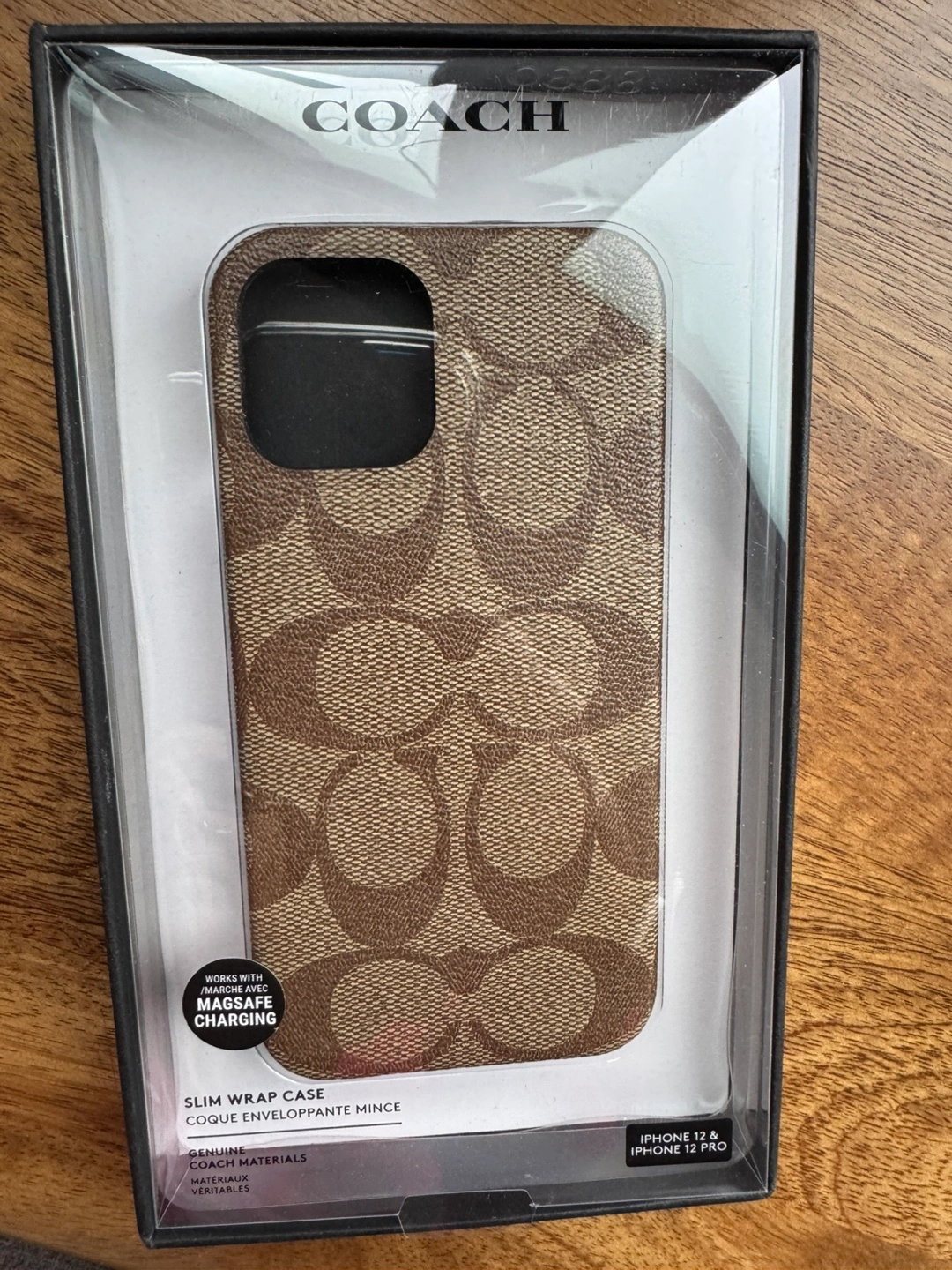 For sale, Coach phone case for iPhone 12 and 12 Pro. Slim wrap design. Very good condition, with only one tiny scratch. With the original box.