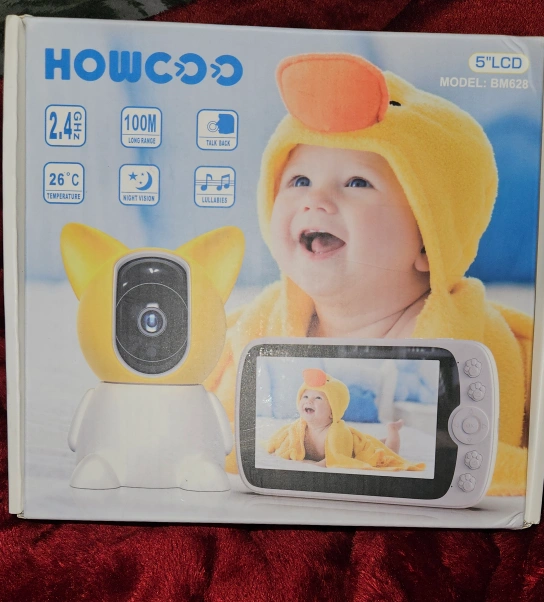 Baby monitor with camera, 5 inch LCD screen, night vision, lullabies and temperature sensor. Includes parent unit and baby unit. NIB never opened