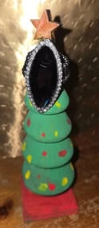 -Ring with a red centre stone. It has small green stones around the band. Size 8.