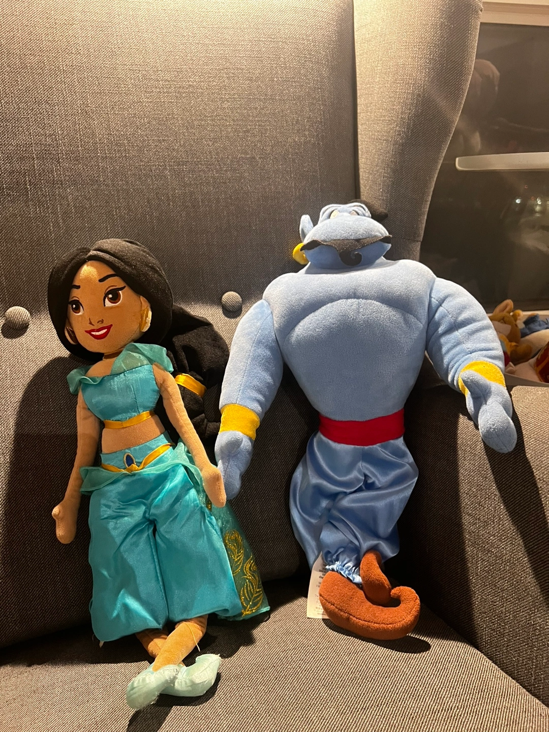 Plush toys featuring Jasmine and Genie. Both in good condition. Pick up only.