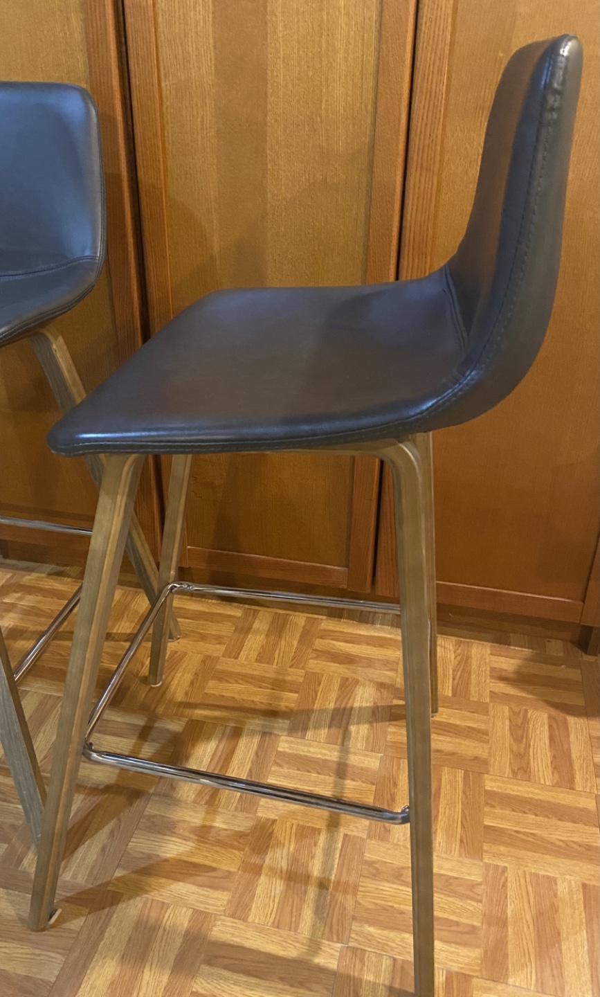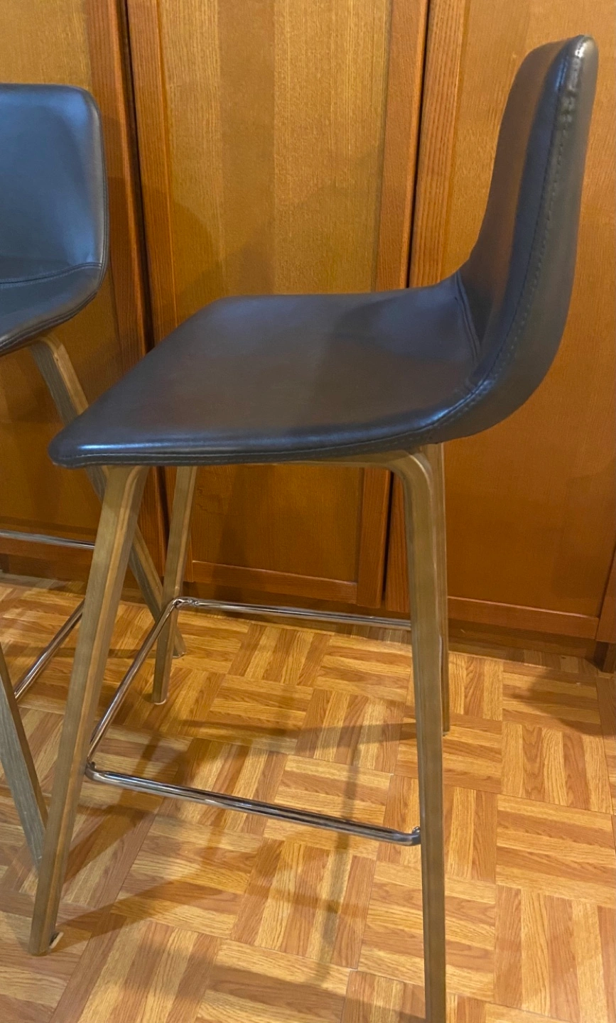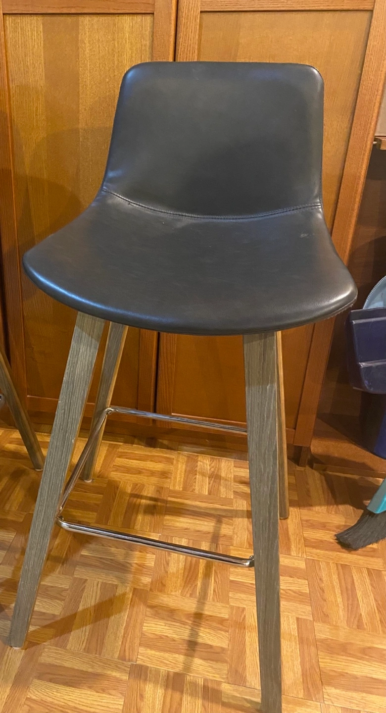 Two black bar stools with a wood frame and a metal footrest. Price is for both.