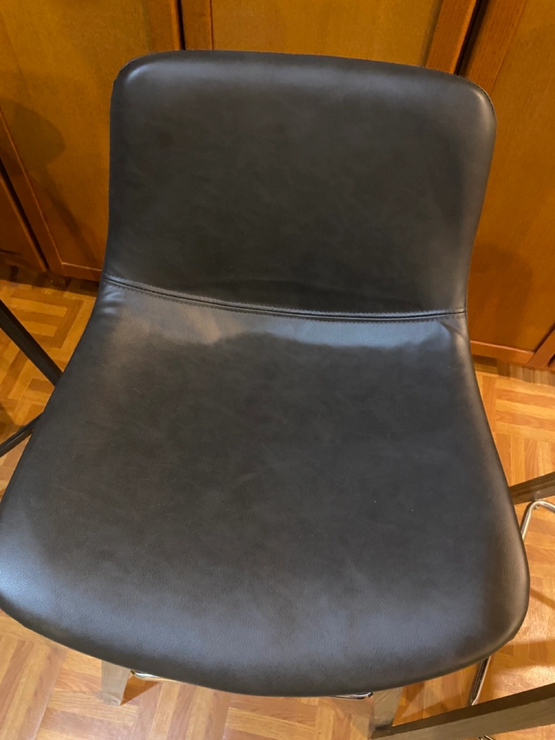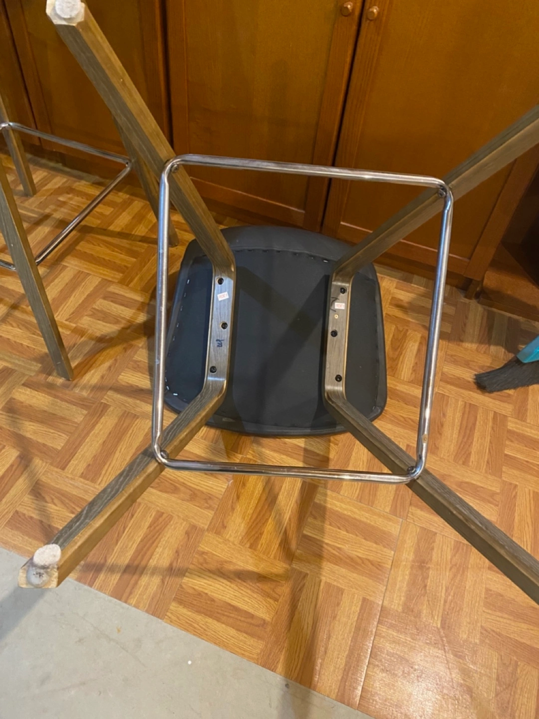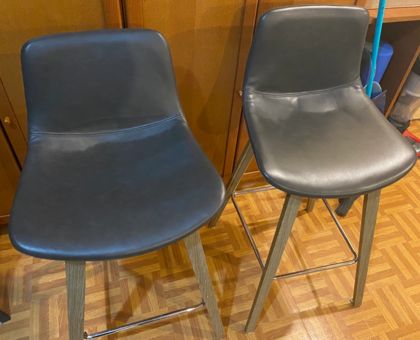 Two black bar stools with a wood frame and a metal footrest. Price is for both.