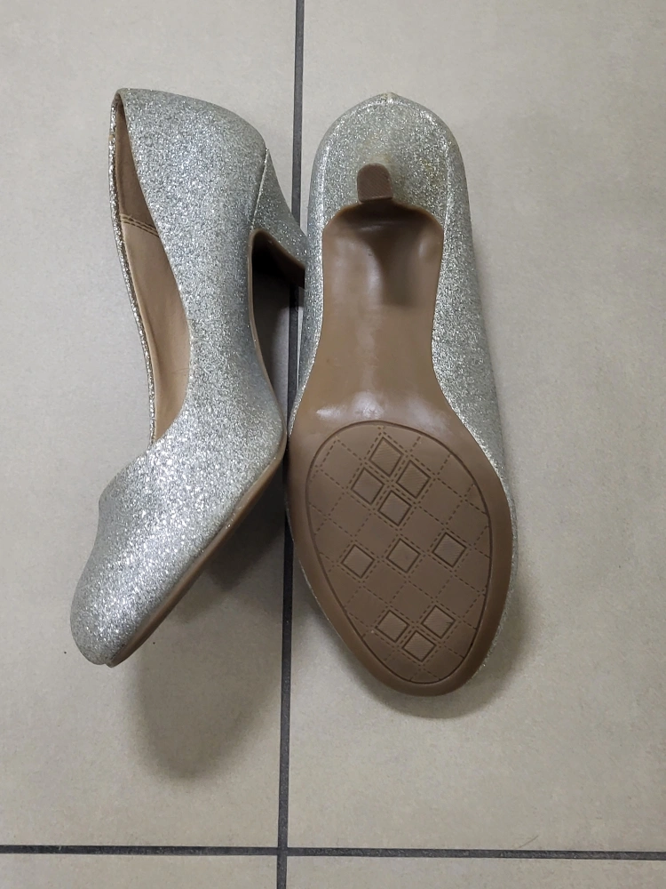 Cityclassified Comfort silver glitter pumps Size 7.5 Low heel of 2 inches Size 7.5 New open box The original price is way more + Tax Here, Price is the lowest/firm to go away faster. Please call/ text for a faster response. 647 855 6217 Meet Ups: 1. Tim Hortons at Jane Park Plaza 2. Any subway station from Kipling to young and Bloor station NOTE: If u like, please see my other ad postings. Leather shoes, dress shirts, dress pants, jeans, Tennis/Squash Badminton Rackets, Exercise/Bike stuff, and more….. Mostly, brand name stuff is new or like new to go away in about half price. Thanks for your time.