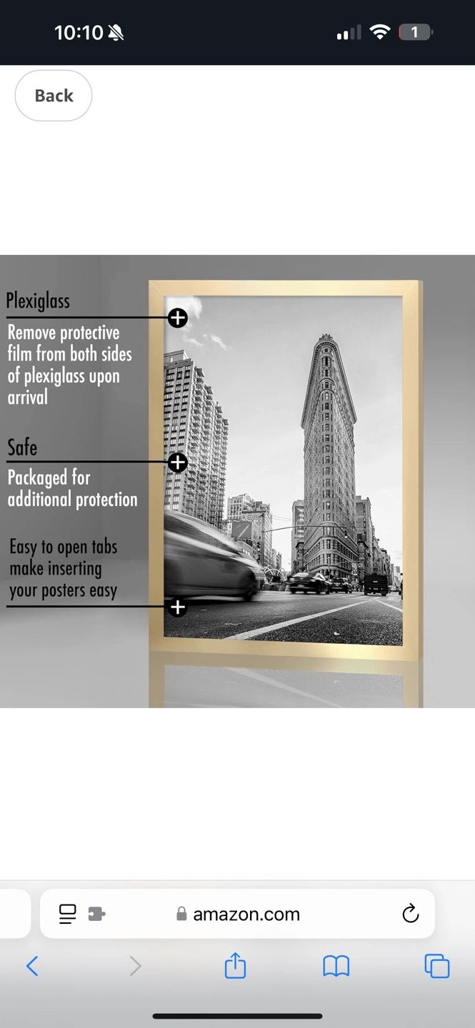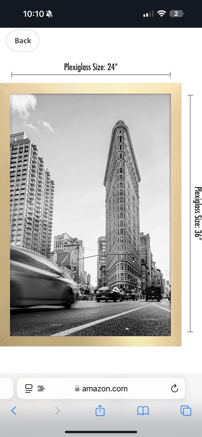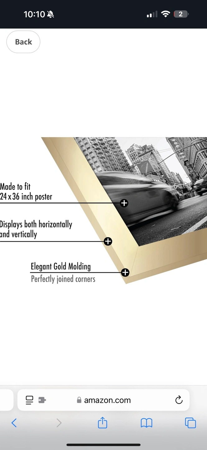 BRAND NEW. Gold picture frame for 24x36 posters. Displays both horizontally and vertically. Plexiglass included.