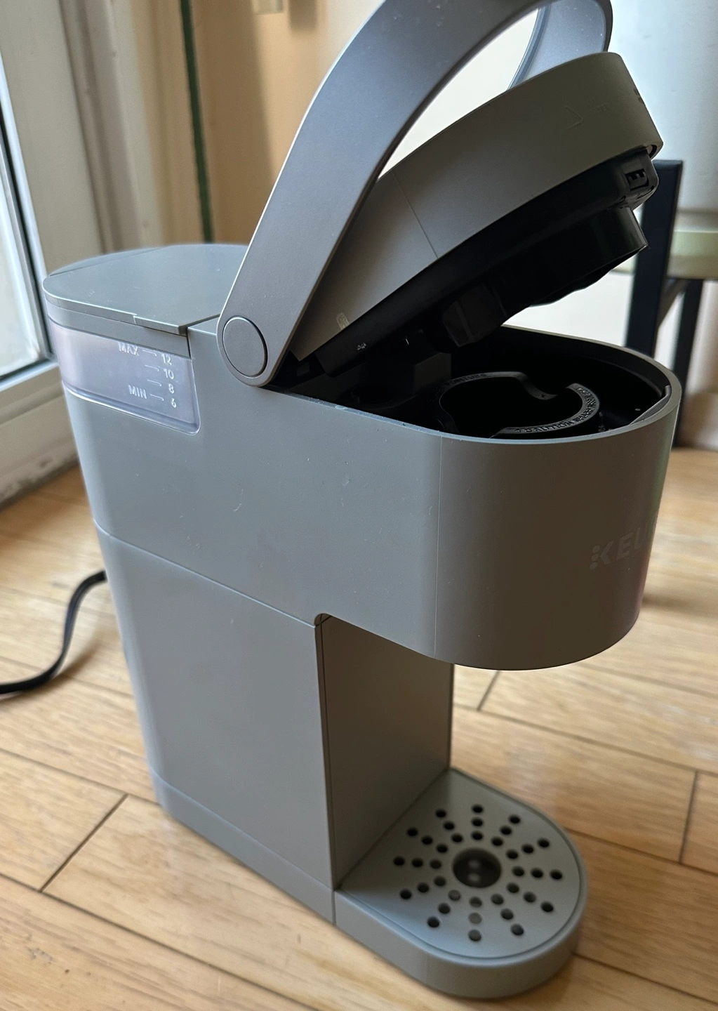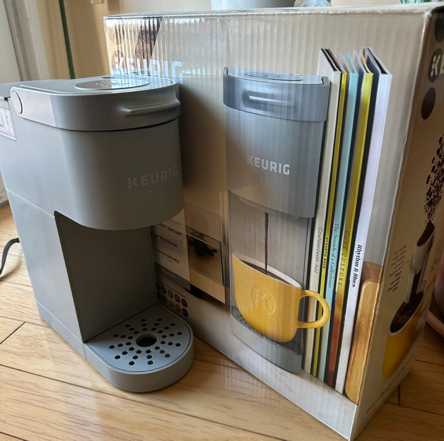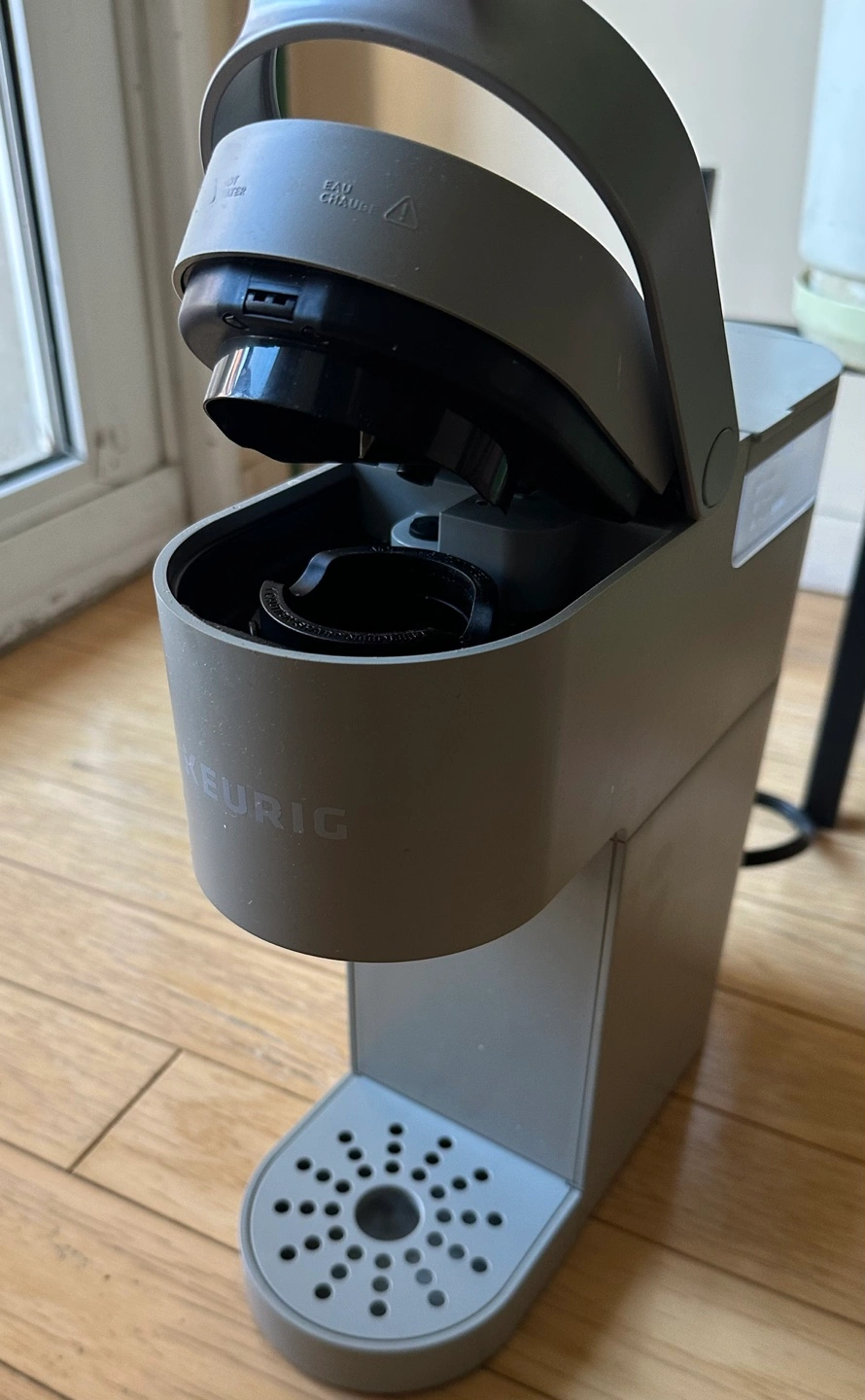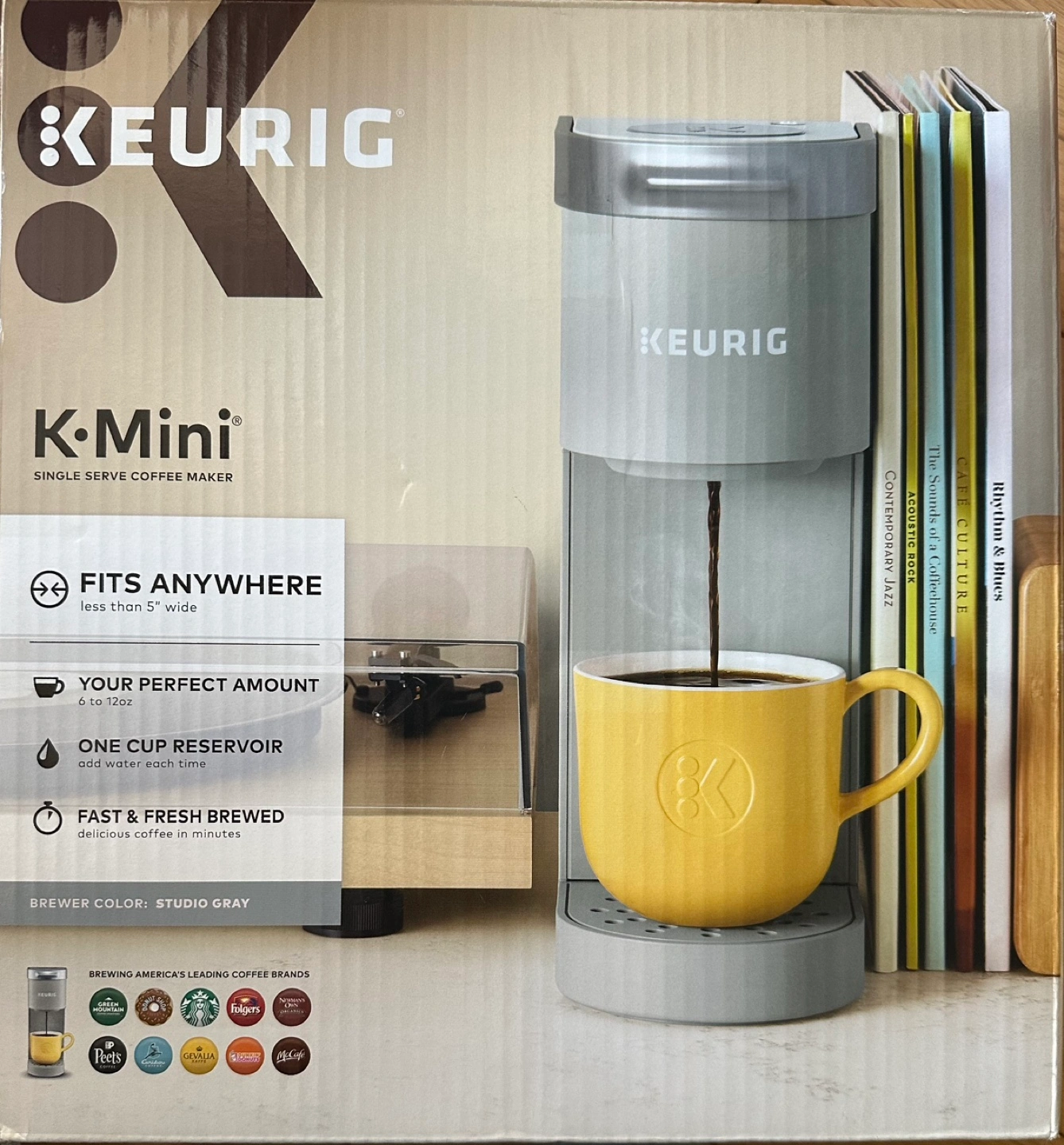 23Keurig K-Mini single serve coffee maker in Studio Gray. Makes 6 to 12oz cups of coffee. One cup water reservoir. Fits anywhere, less than 5 inches wide. Fast and fresh brewed in minutes. Like new