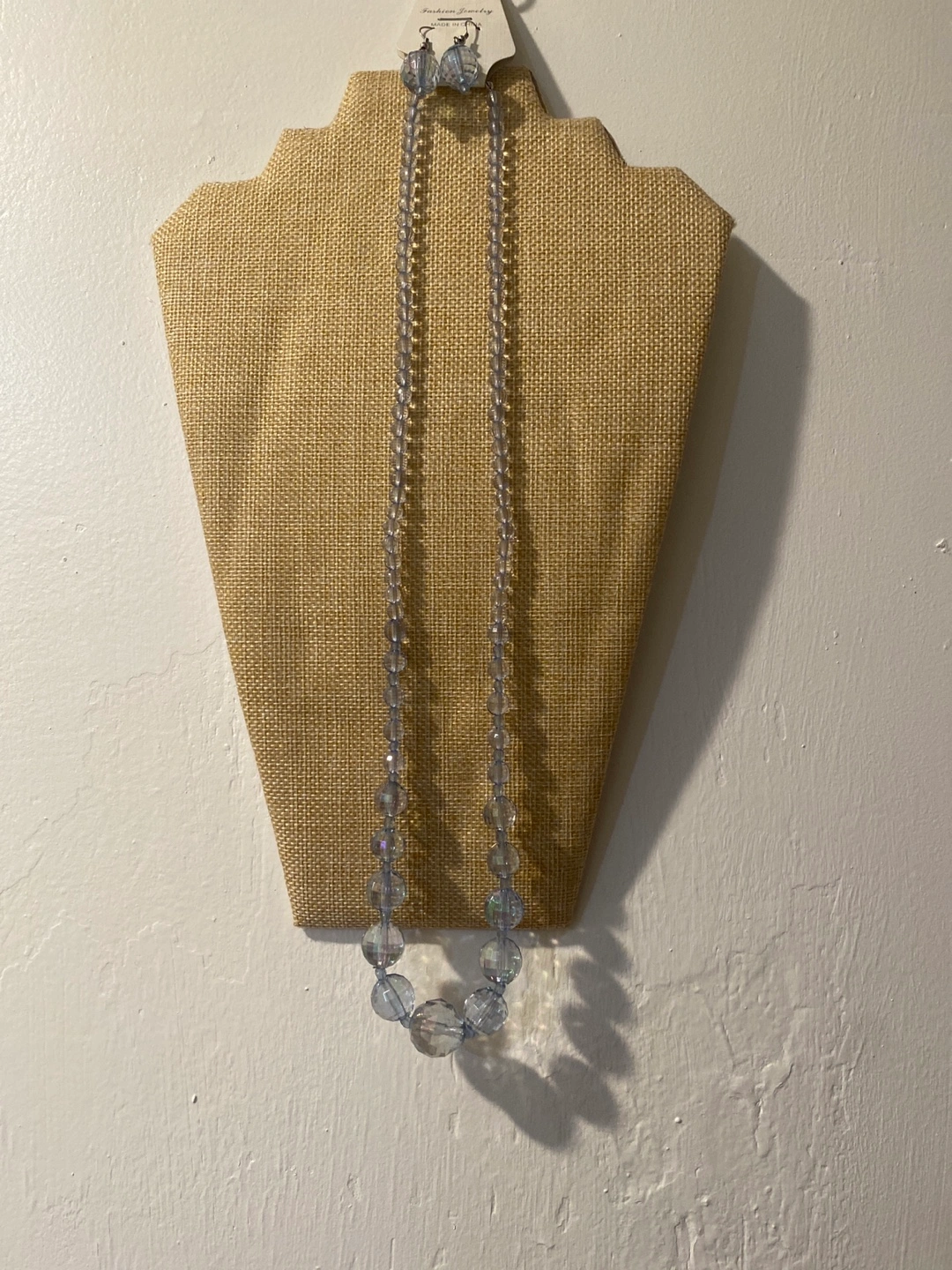209Blue crystal beaded necklace and earrings set. Includes matching earrings.