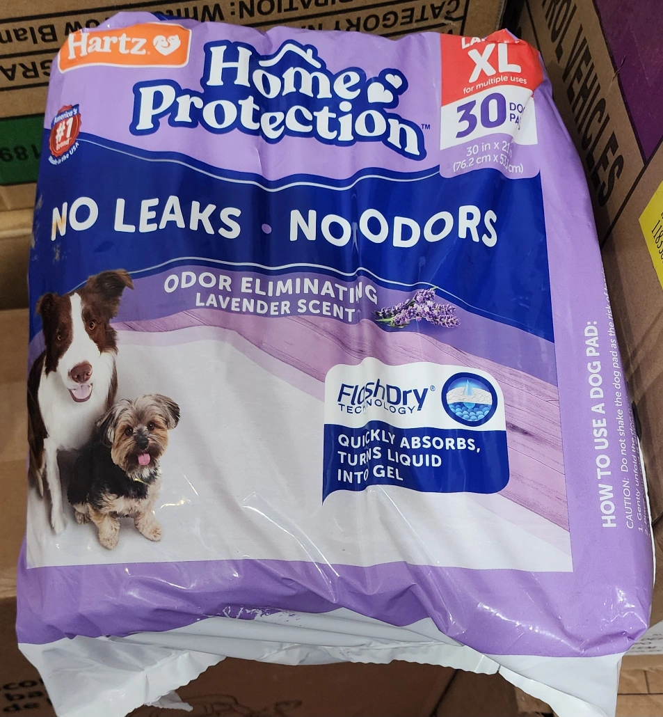 Large dog pads, lavender scented, 30 count.. it is open.. and it has 17 or 18 pads..