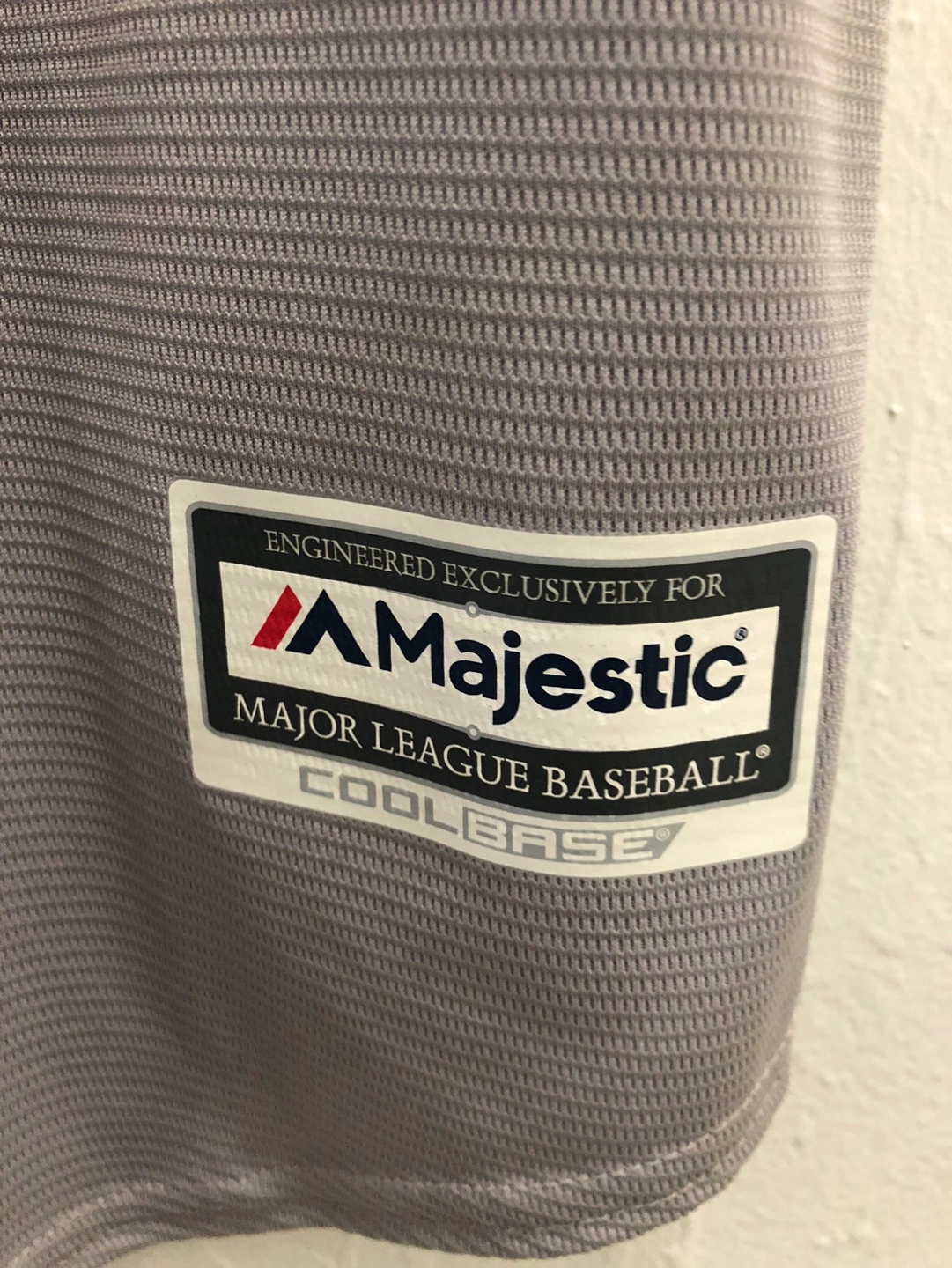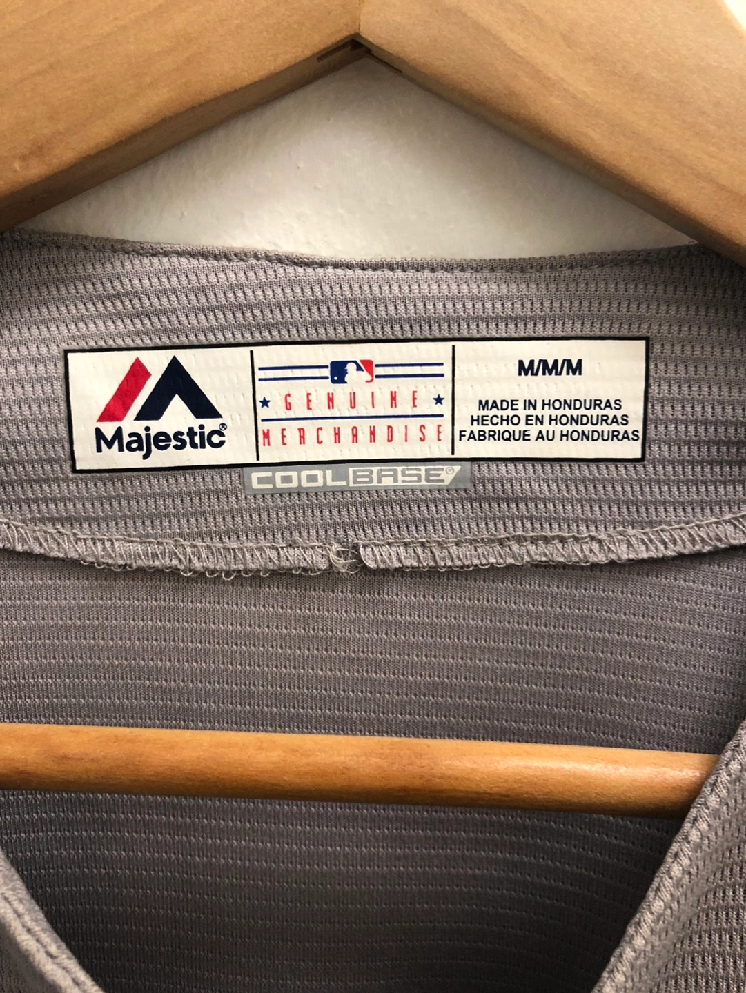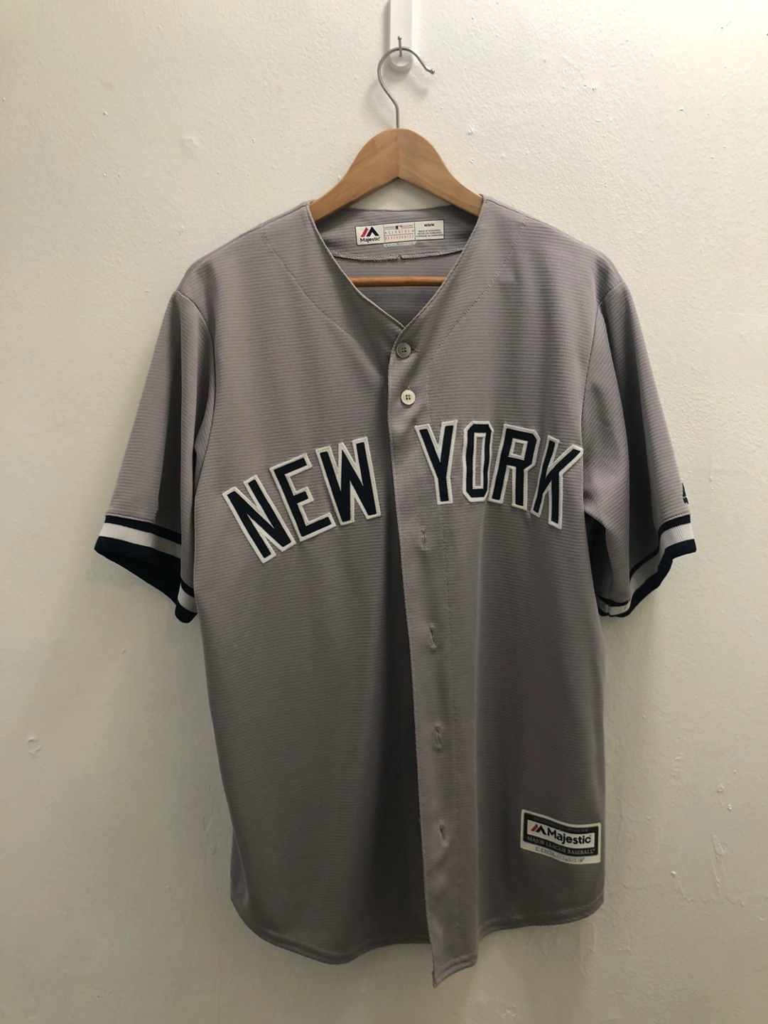Yankees Grey jersey with a button-up front. Cool Base technology. M/M size.