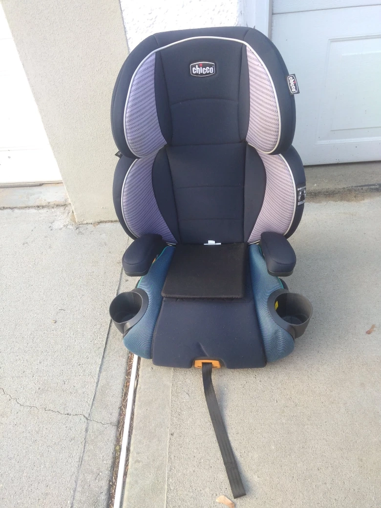 Booster car seat with cup holders. Black and blue fabric. pick up in Astoria Queens