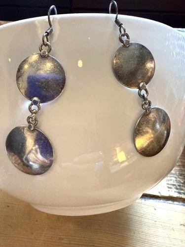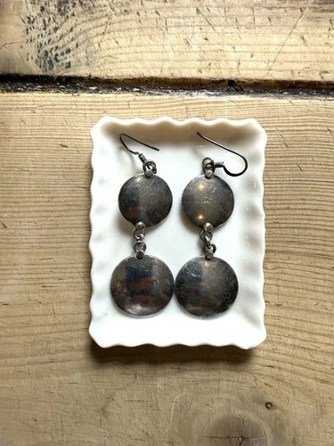 Vintage Silver Dangle Drop Hammered Disc Earrings
