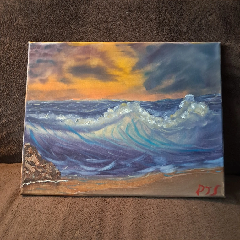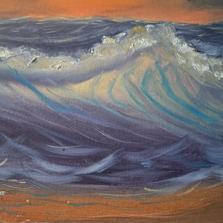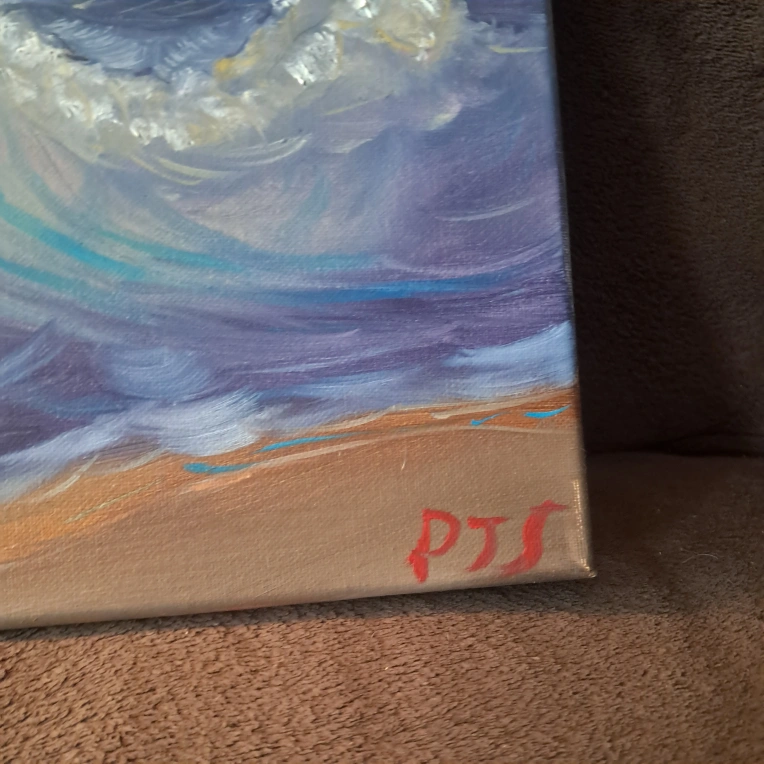 Original oil painting on canvas. Depicts waves crashing on a beach. Signed by the artist. 11x14