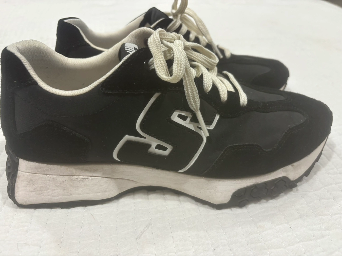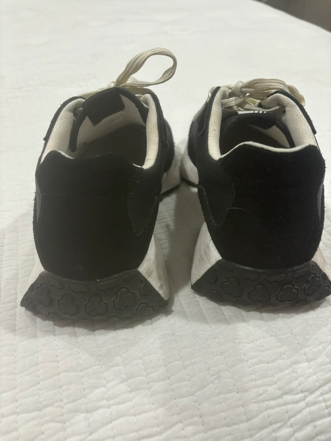 20Black sneakers with white soles. Air-Cooled Memory Foam insoles. Lace-up closure.