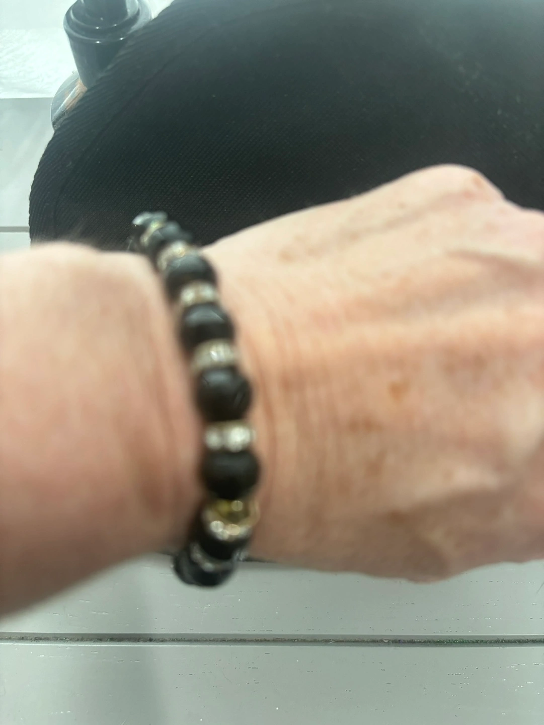 20Black beaded bracelet with rhinestones. Stretchy.