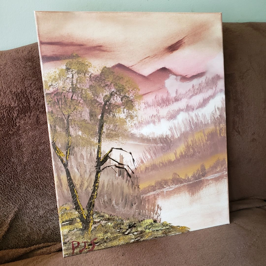 Hand Painted Canvas Oil Paint Bob Ross Inspired.