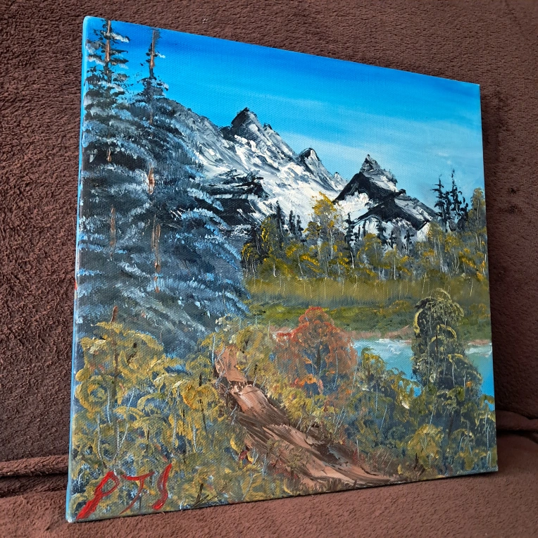 Hand Painted Canvas Oil Paint Bob Ross Inspired.