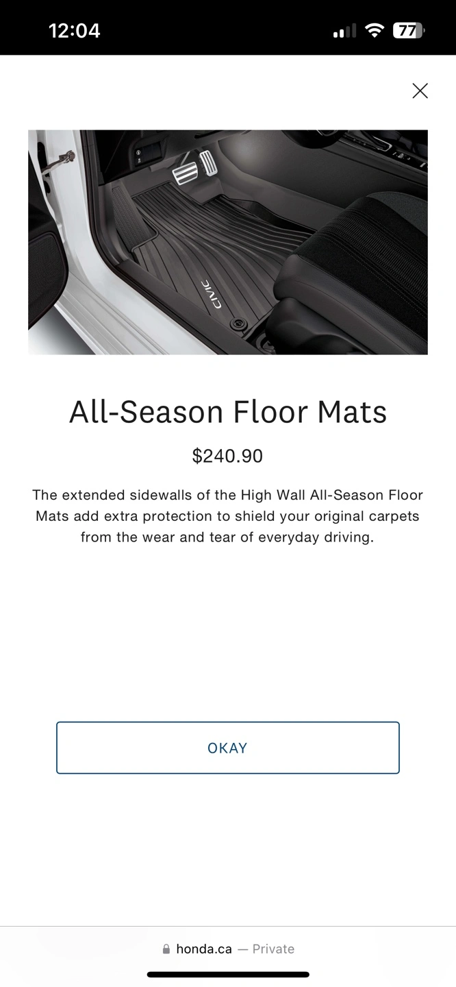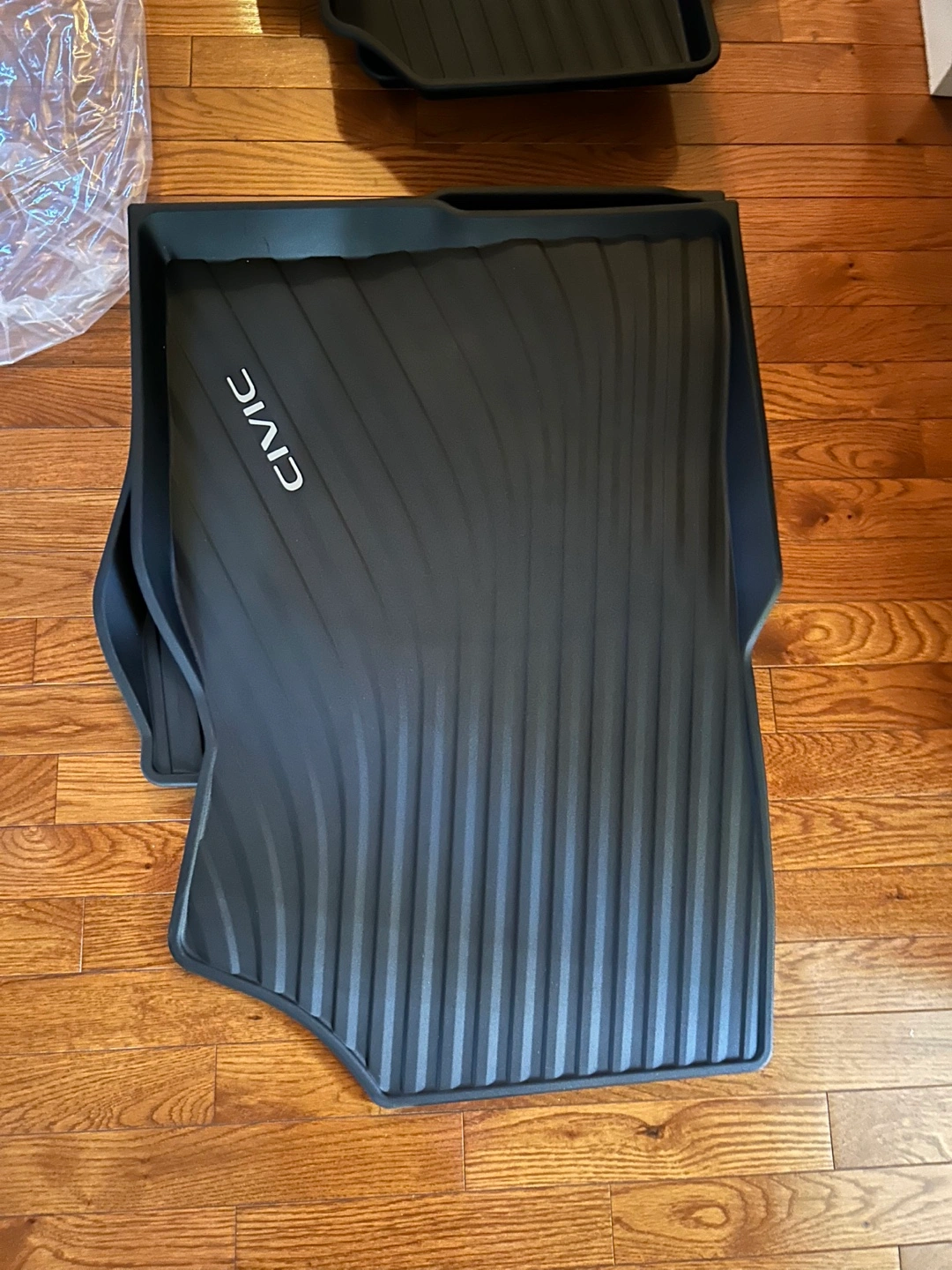 Black floor mats with a raised design for better grip. Made for Honda Civic. Brand new 195$