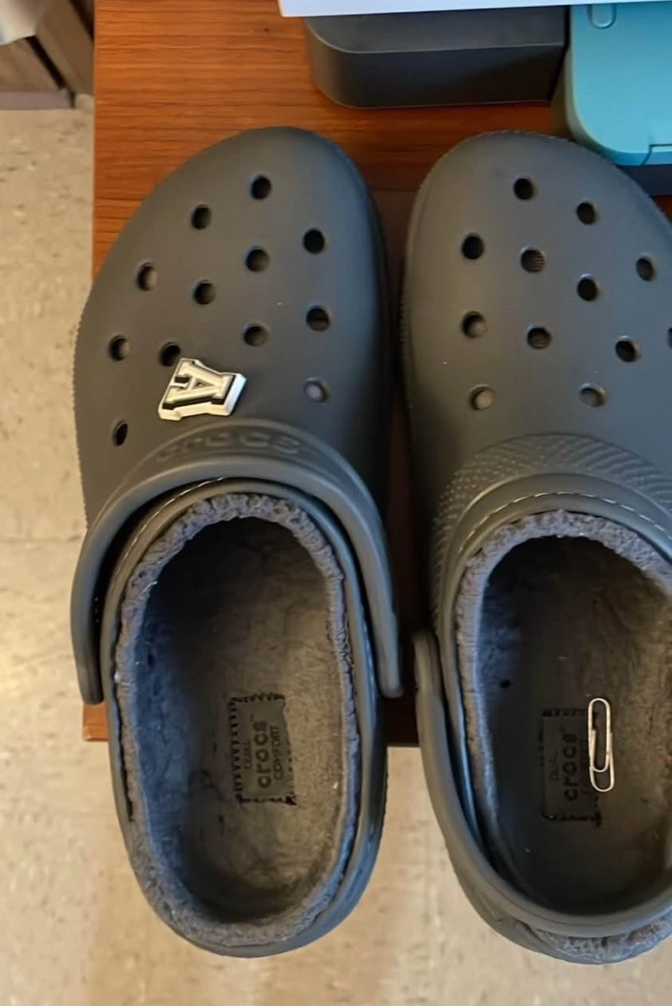 475Black lined clogs. One has a charm on it. I’m planing on getting ride of them today.