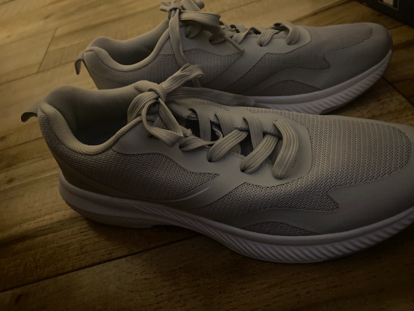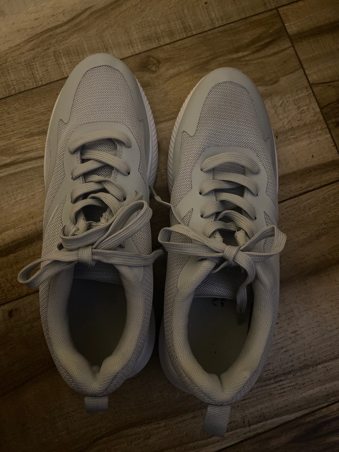 209Gray athletic sneakers with a white sole. Lace up closure. Lightly worn.