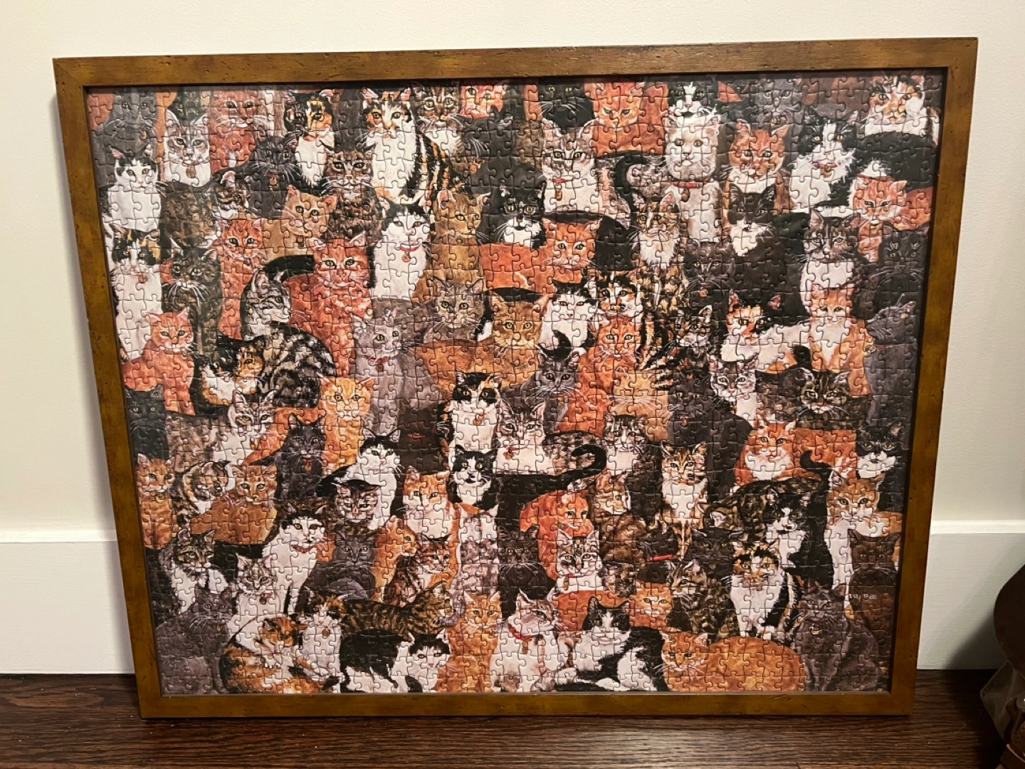 127Framed puzzle of cats. Nice wood frame 26 x 21 inches
