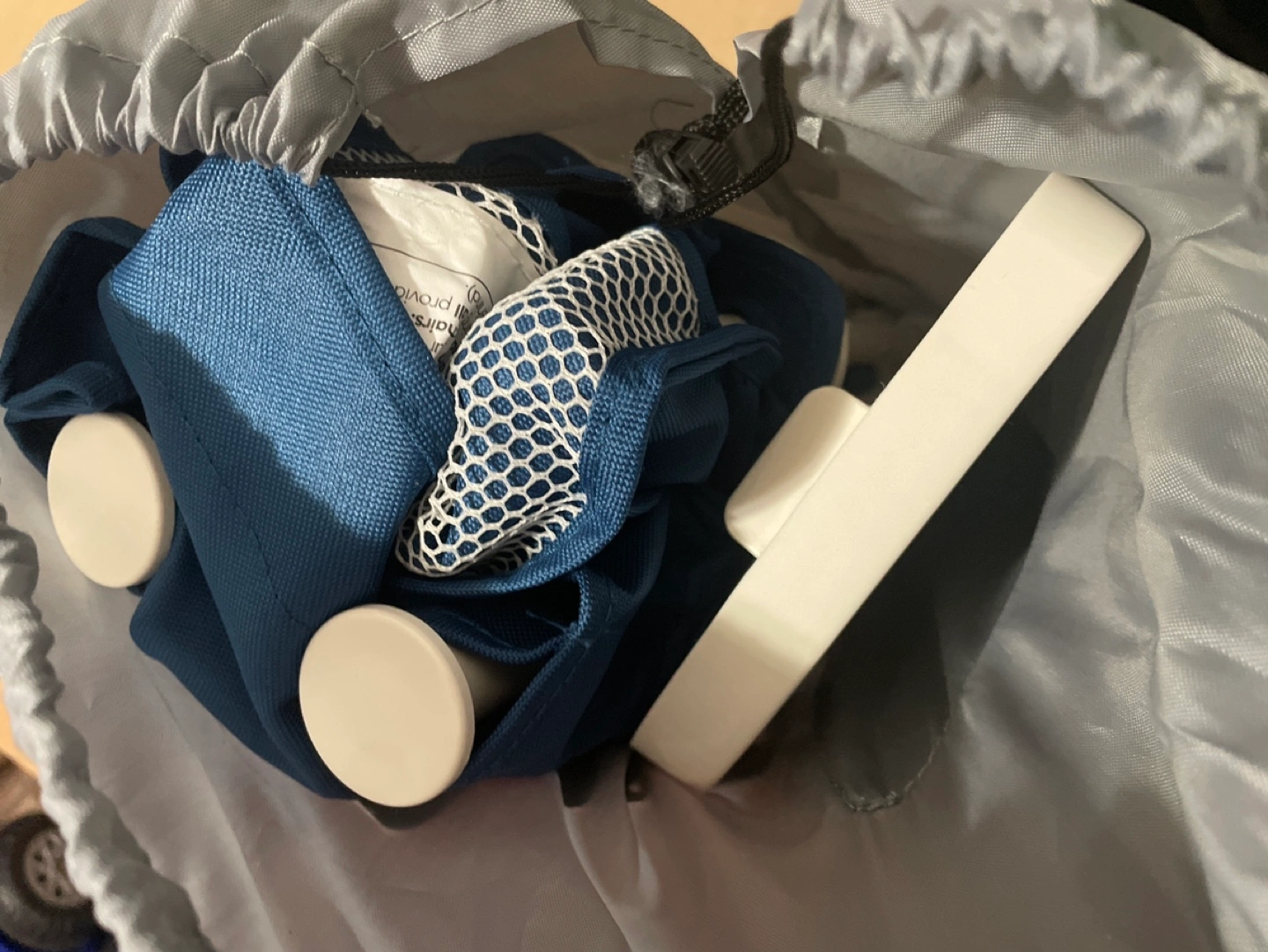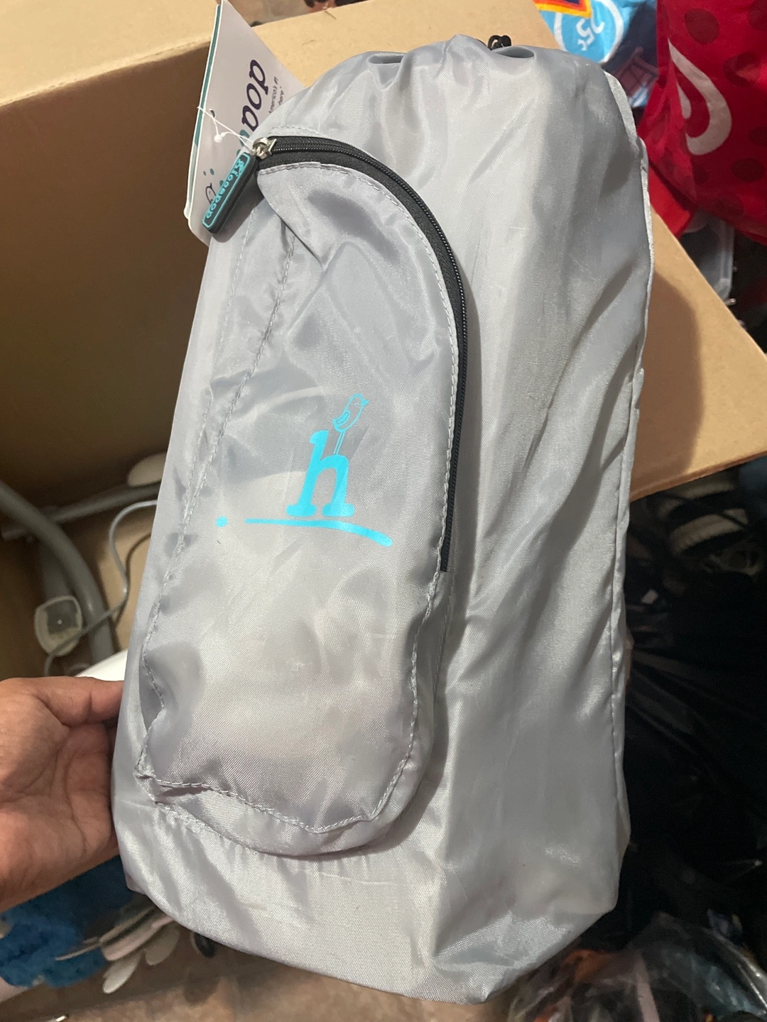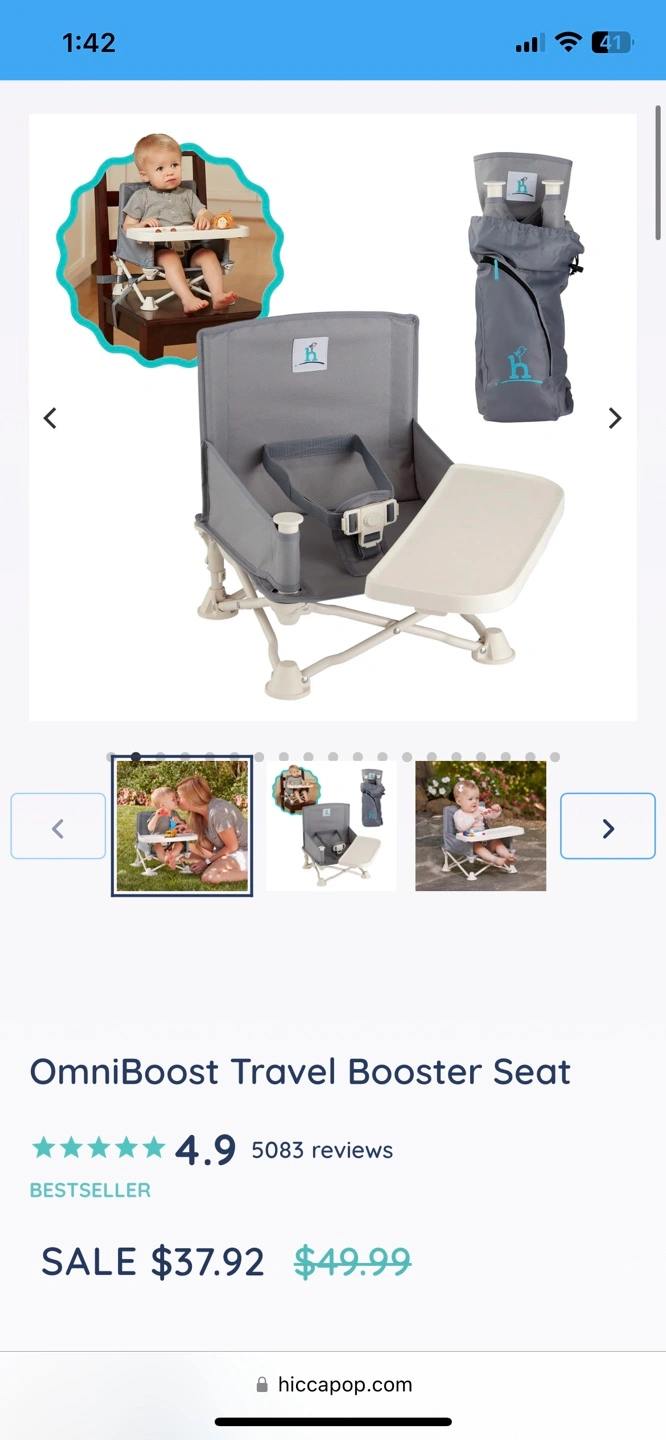Portable booster seat, folds flat and comes with a carrying case. Includes a tray. Blue chair great for traveling ties to adult chair has leg covers for sand so it won’t sink