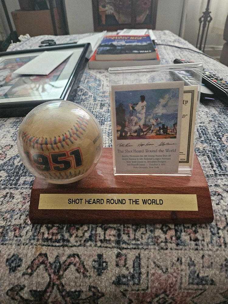 183Sports Collectible featuring handsigned baseball. Bobby Thompson and Ralph Baranca signed this baseball.
