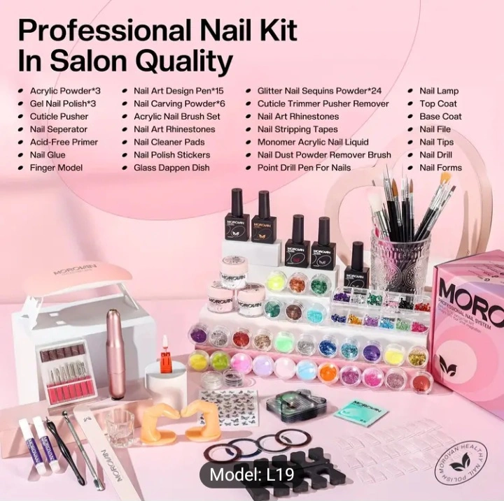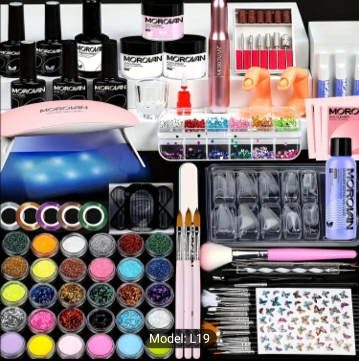 Professional nail kit. Includes lamp, acrylic powder, gel polish, nail art tools and more.