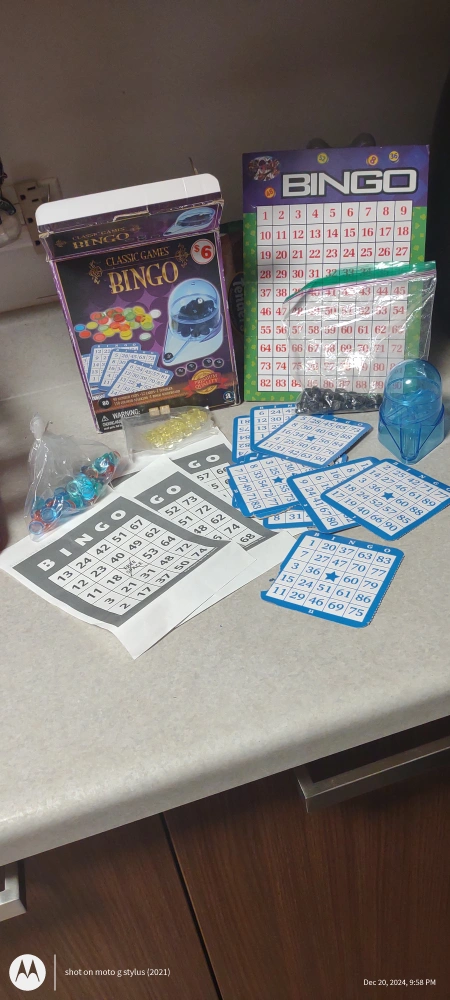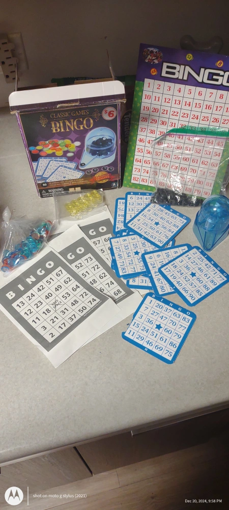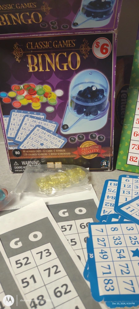 381Bingo game with multiple cards, chips, and a cage. Includes a GO! game board.