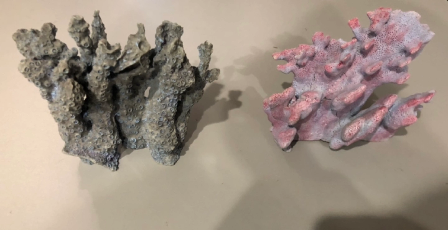 Two pieces of coral. One is grey and one is pink. Great for aquariums, terrariums or reptile environments. $15 each or both for $25. They are approximately 6 inches each.