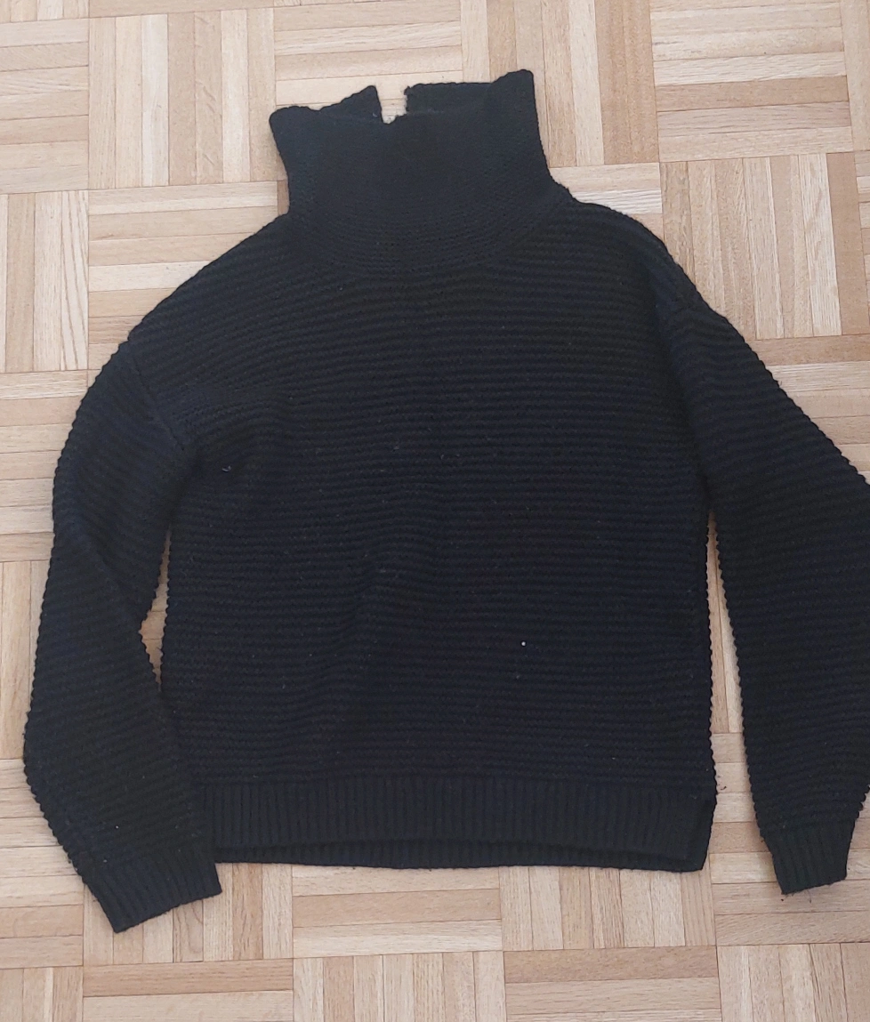 42Wool and warm. Black turtleneck sweater. Long sleeves. Ribbed knit.