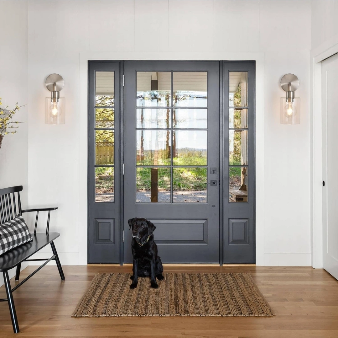 Modern wall lighting fixtures. Farmhouse wall light with clear glass, brushed nickel vanity light bedside night light. Hardwired and dimmable. E26 bulb (bulbs excluded).