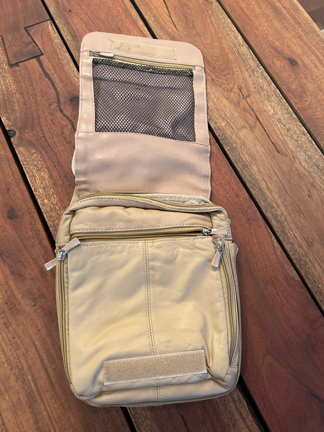 Lots of compartments. Soft and comfortable adjustable strap. Perfect for travel or just going about daily life.
