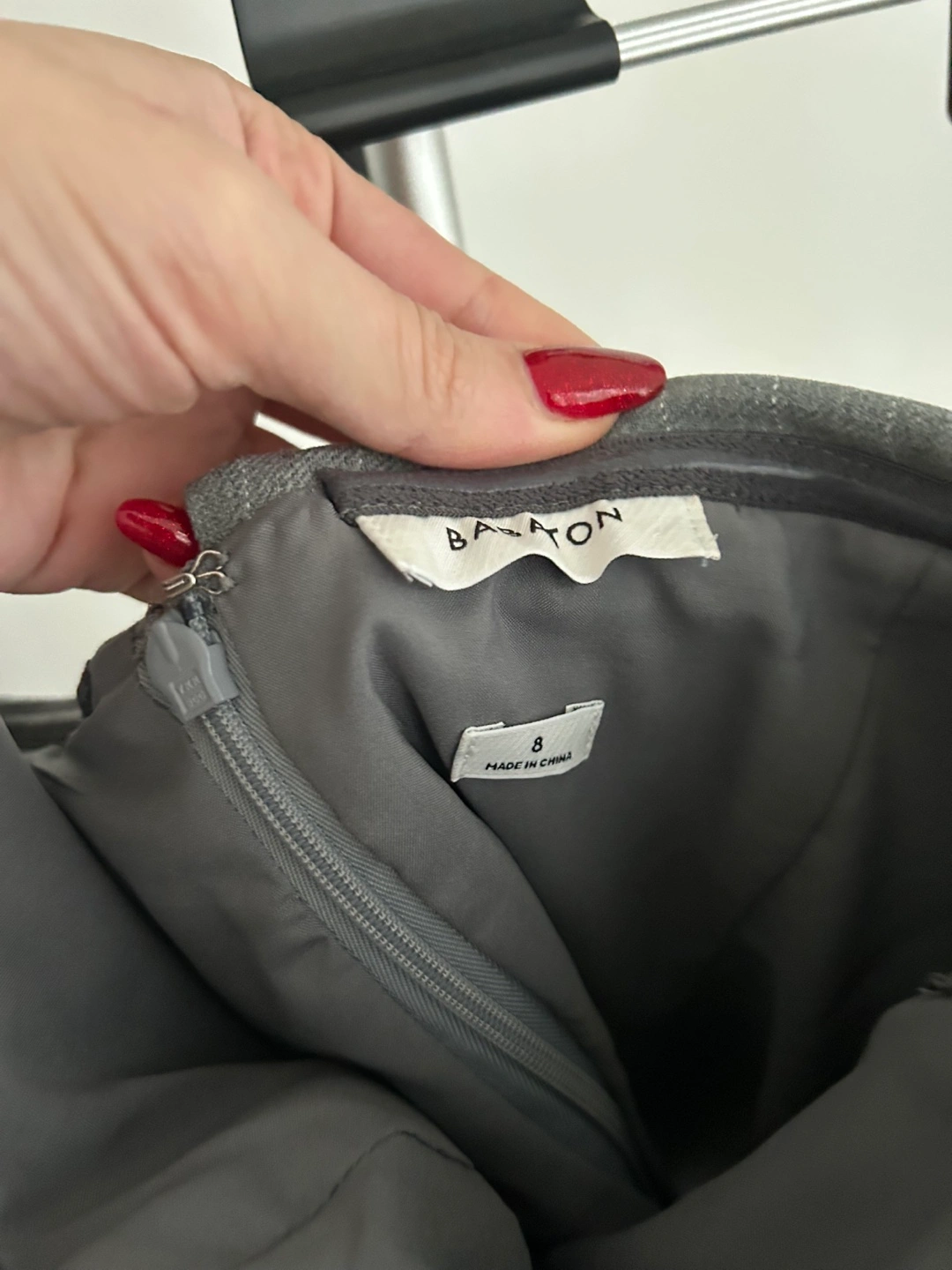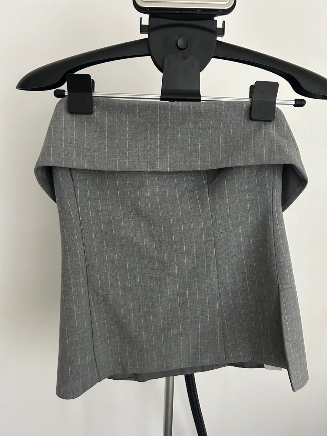 Strapless tube top with a pinstripe pattern. Grey and white colour. Size 8.i am usually a size 6 but had to size up as it’s fitted.