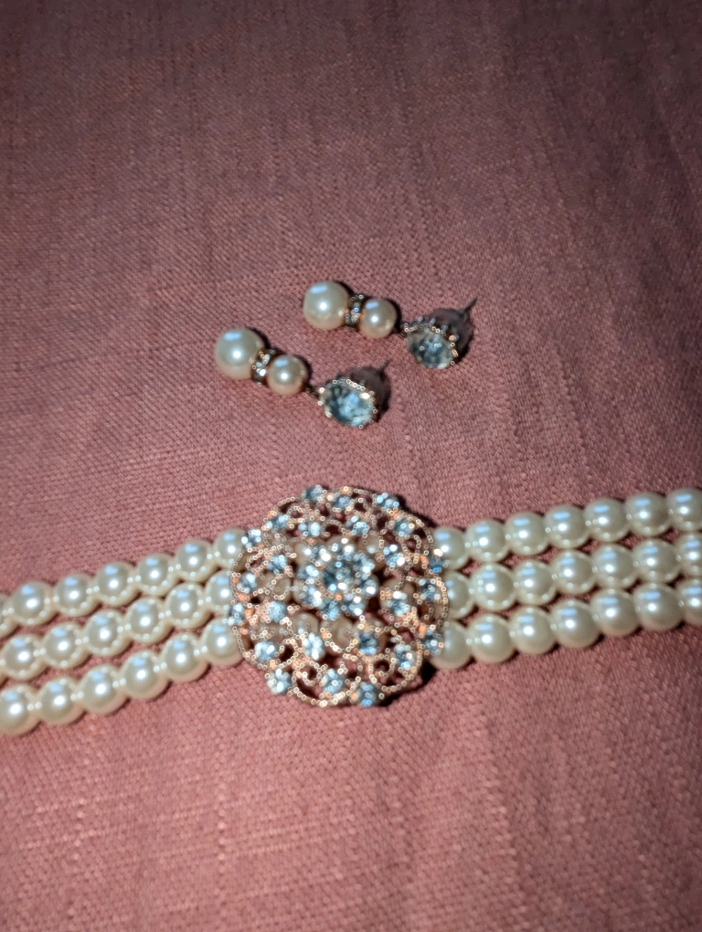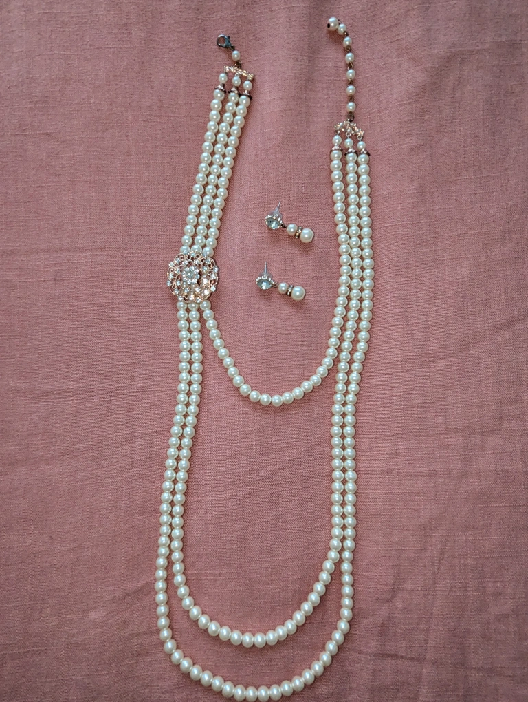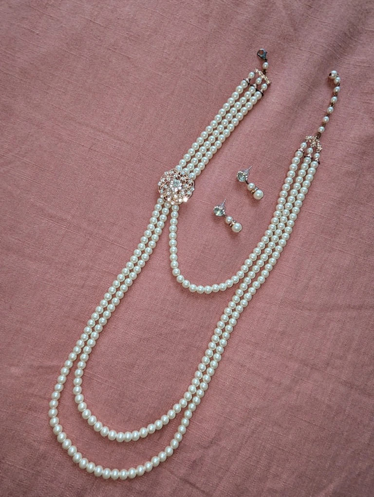 Women's Crystal Stimulated Pearl necklace with earrings