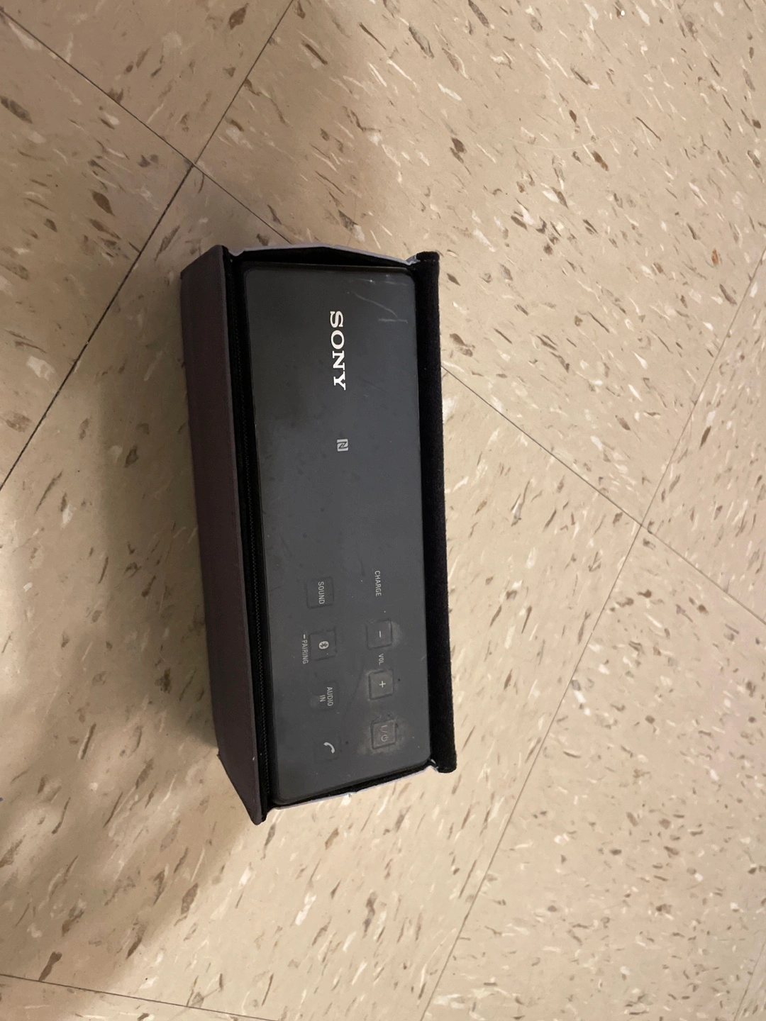475Portable speaker with carrying case. Includes charging cable.