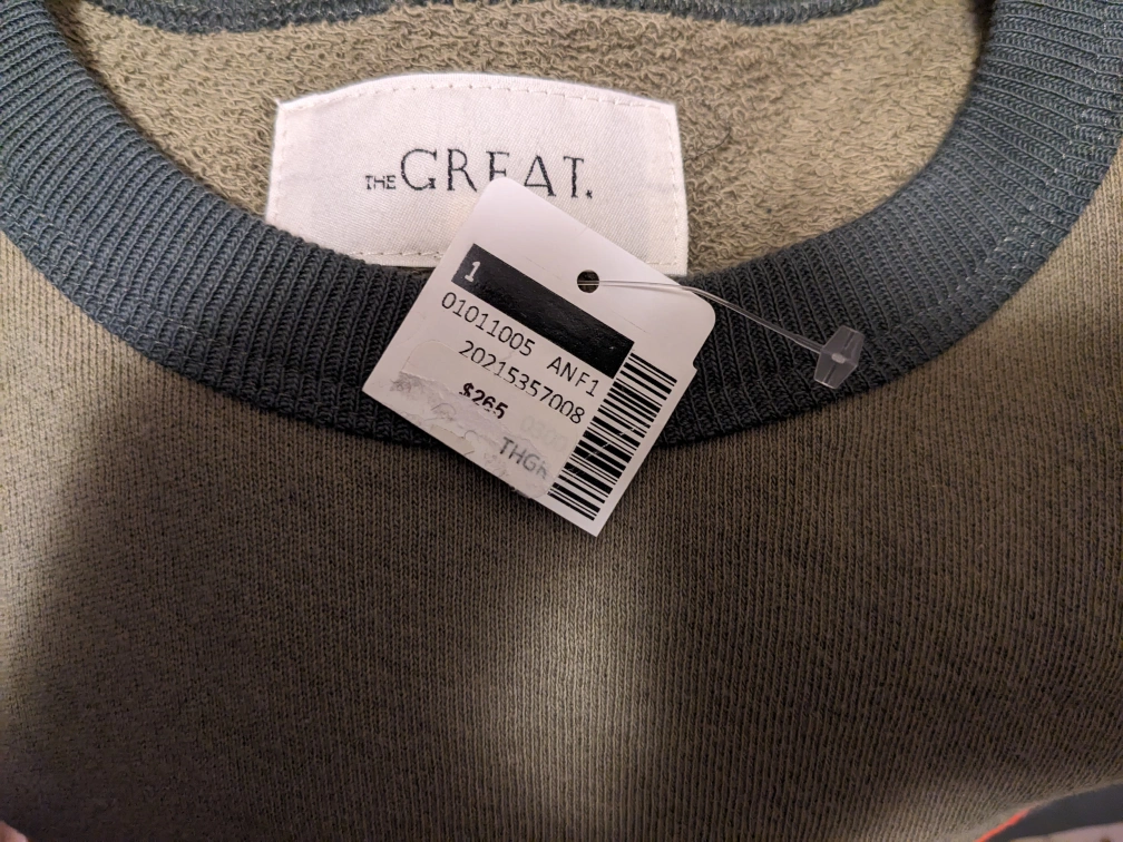 1000+The Western Teammate Sweatshirt is a new style that combines a few of THE GREAT’s favourite design elements. It’s based on one of their signature fits which features clean cuffs and a half moon in the back collar. It’s garment-dyed for bold saturation on its soft knit fabric. And it’s finished with a graphic chevron detail, with a mini-cord contrast between its colourblock pieces. 100% Cotton Crewneck Long-sleeve Pull-on Made in the United States