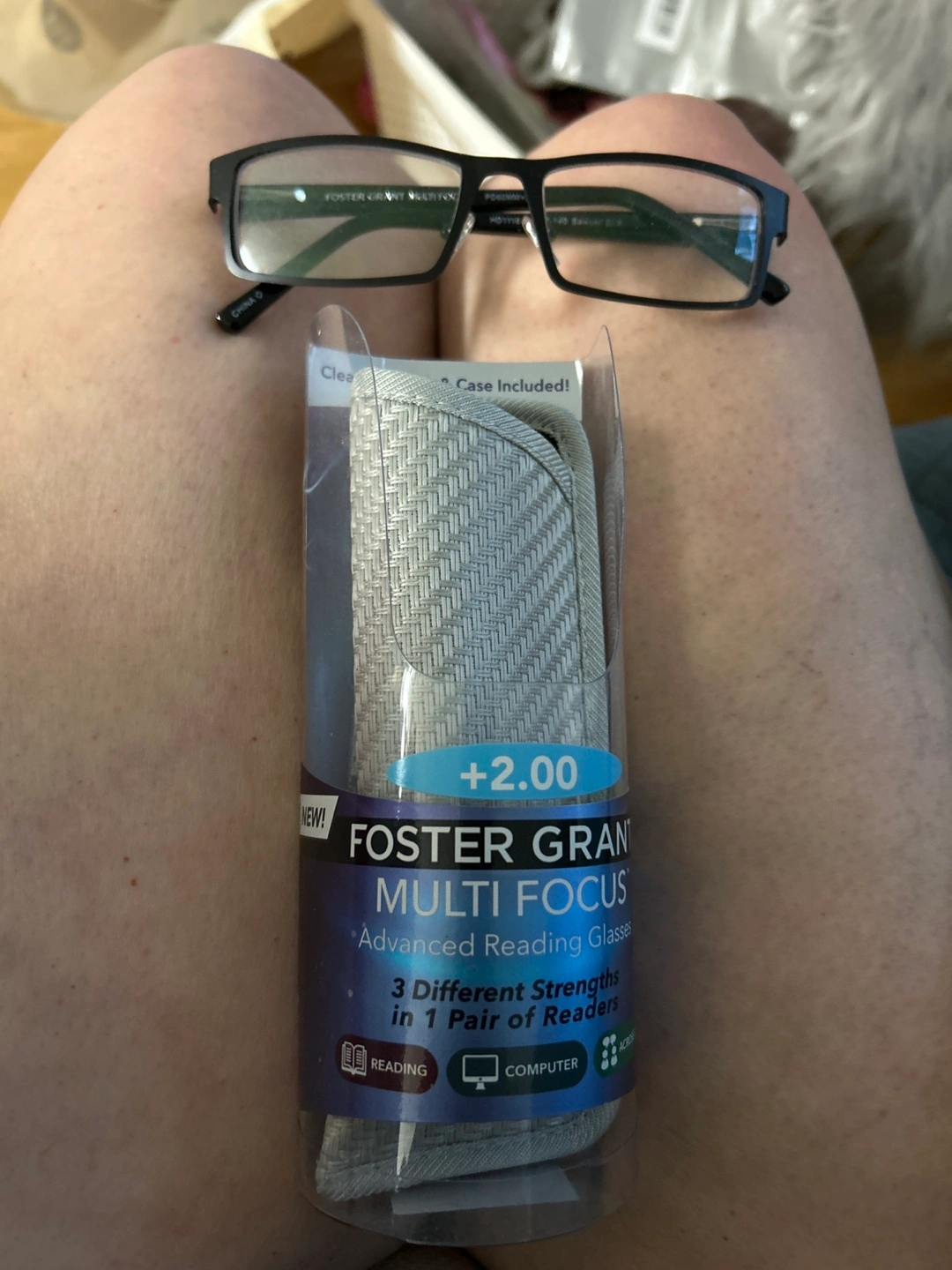 613Men’s or women’s style Reading glasses +2.00 with case. Three different strengths in one pair. Across Desk, Computer, and Reading. New, never worn. Normally over $24 in store Lost my receipt and no refund/exchange