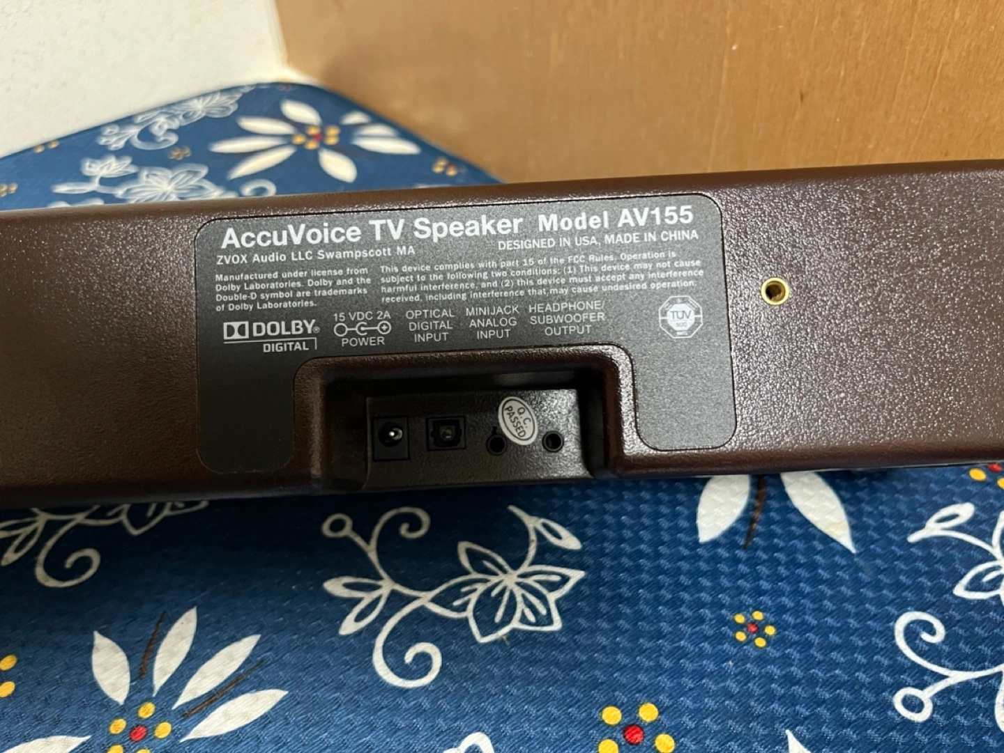 This is a soundbar that has a feature that enhances the voice for clear hearing. It was rarely used and I have included the instruction manual as well as the Optical and power cord. The remote is also included.