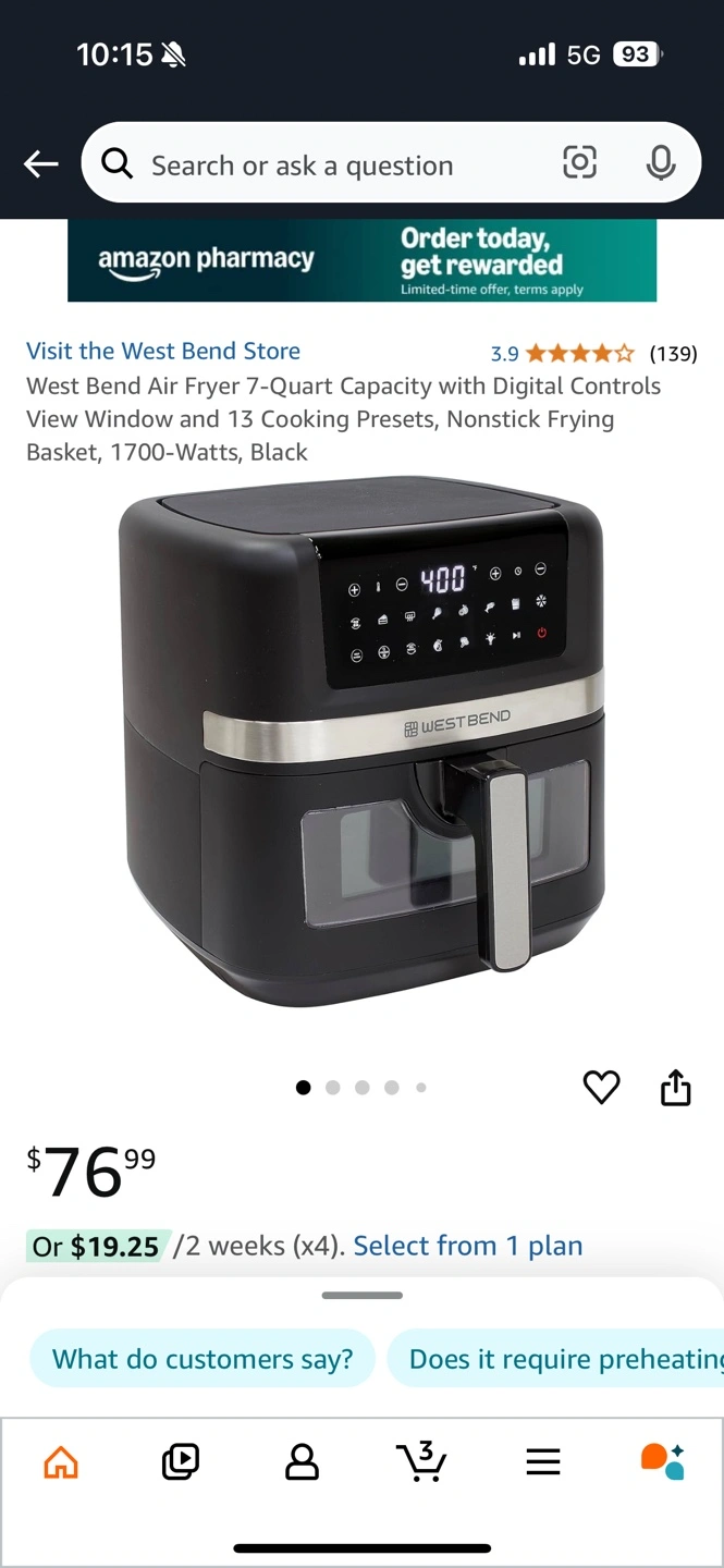 887-quart capacity, digital controls, view window, 13 cooking presets, nonstick frying basket, 1700-watts, black