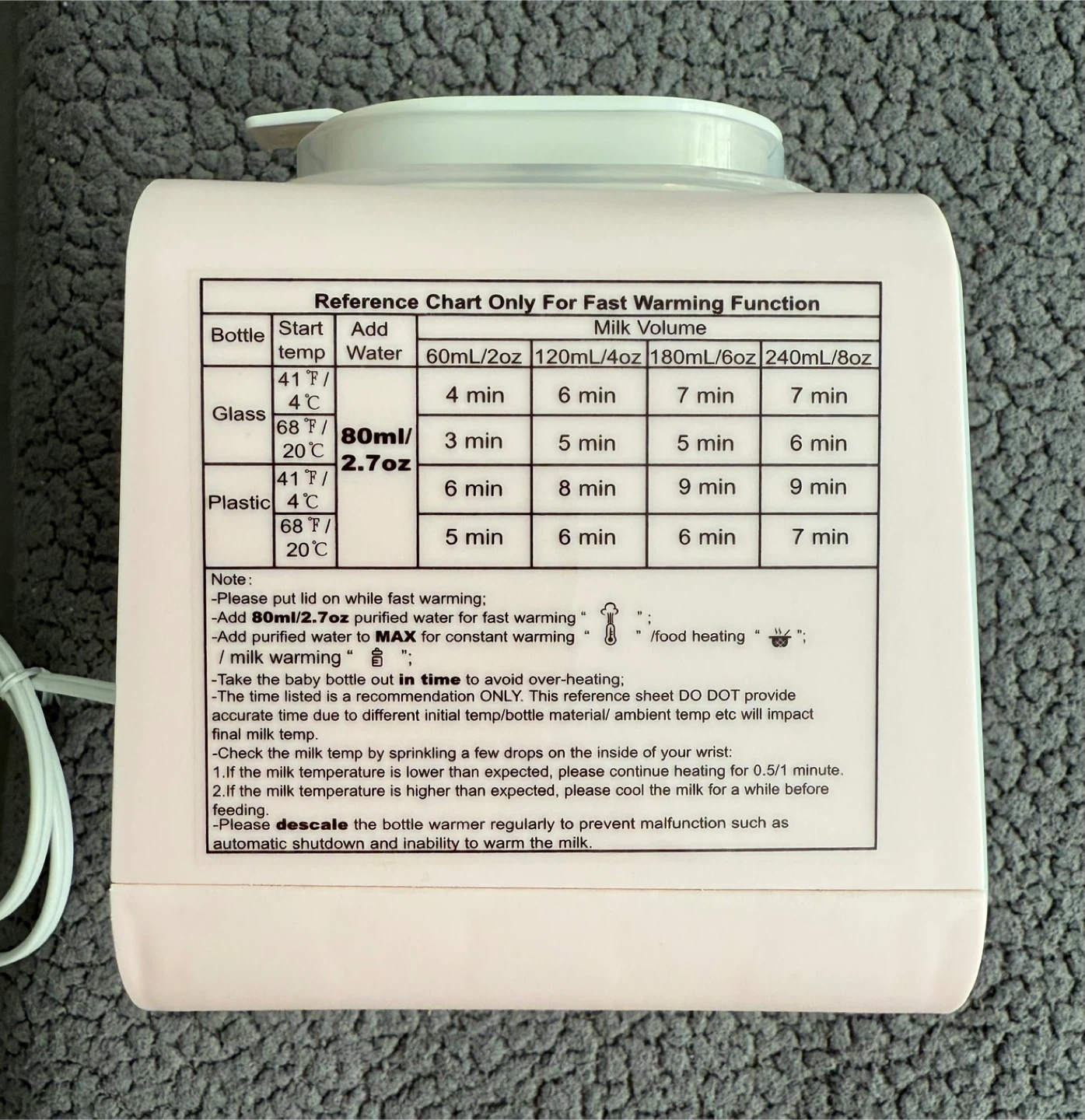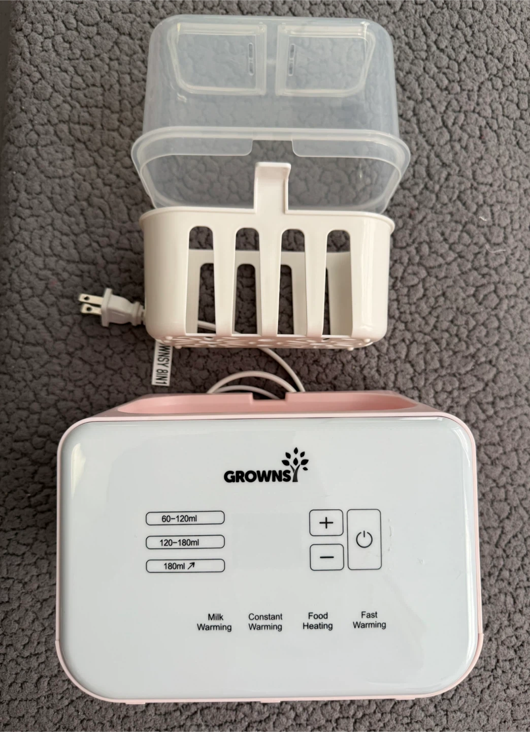 I'm selling a Grownsy 8-in-1 Baby Bottle Warmer! It has fast heating with a timer. It has settings for milk warming, constant warming, and food heating. Retails for $49.99