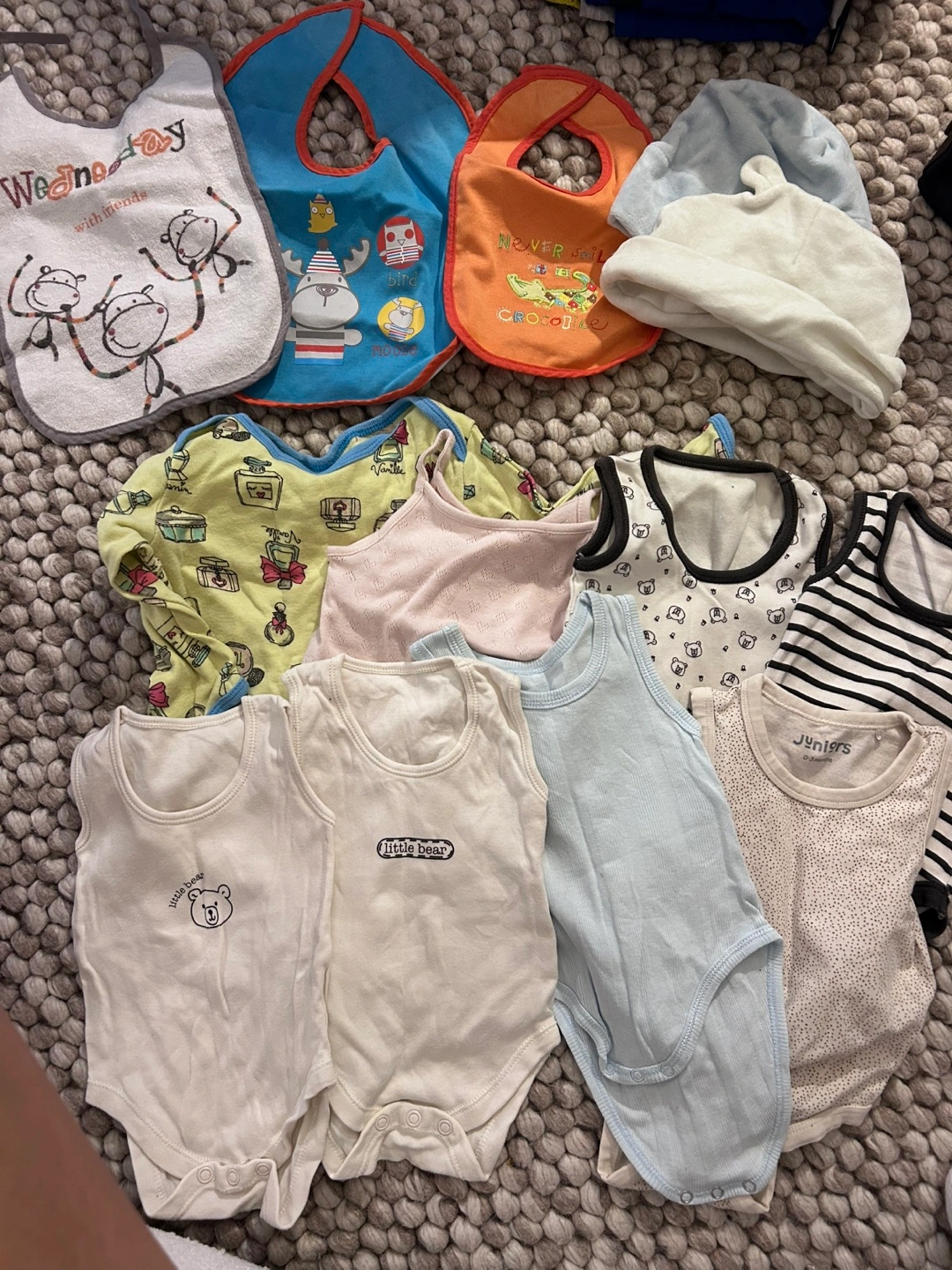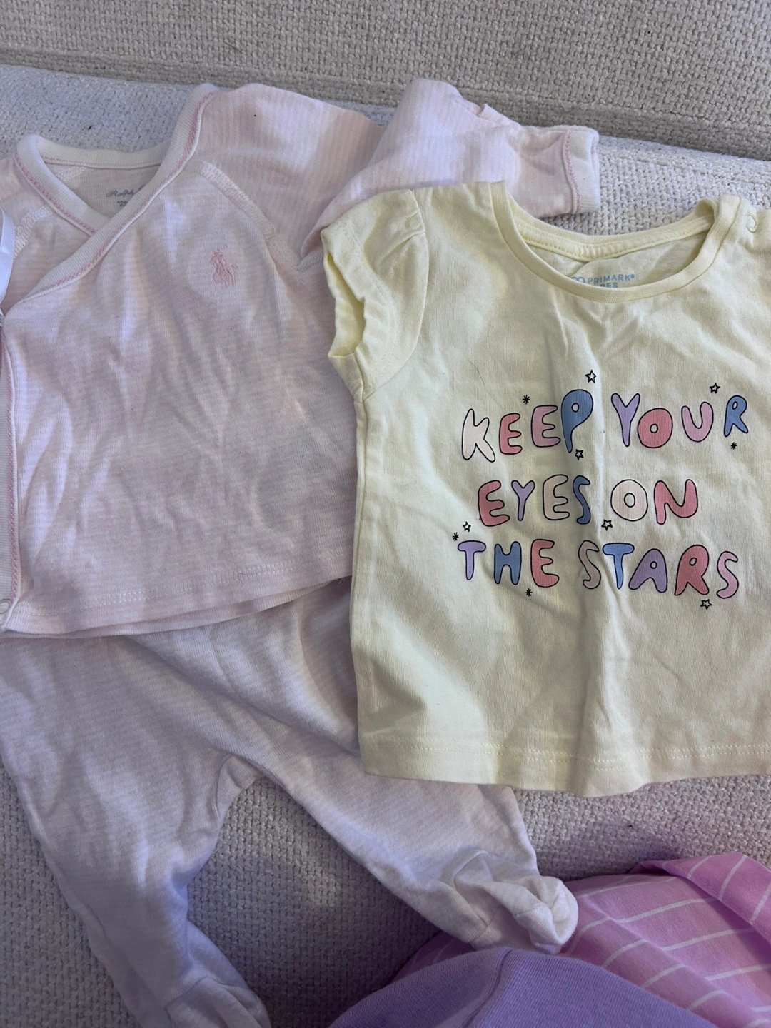 707Bundle of baby clothes in sizes newborn and 0-3 months. Includes sleepers, shirts, and onesies.