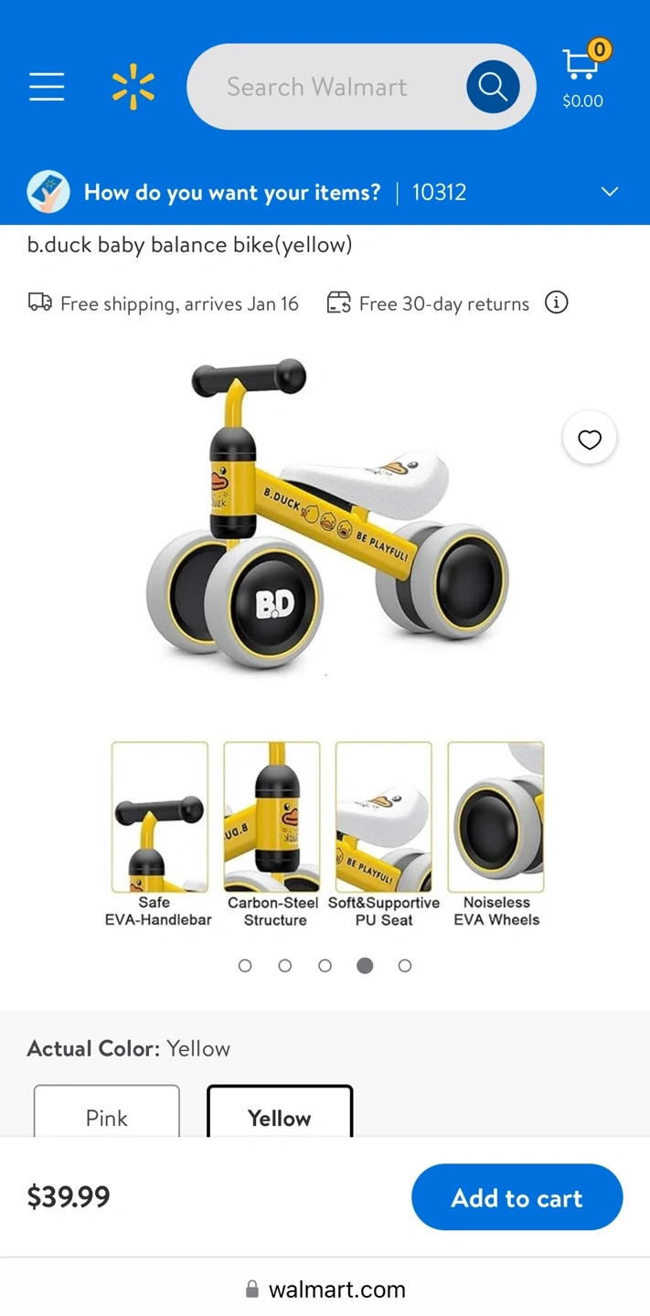 B. Duck Baby Balance Bike in Yellow. In like new condition, never used. Located in Staten Island, NY 10312. Local delivery available and can meet in some parts of New Jersey, Brooklyn, Queens, and Manhattan for a small additional charge.