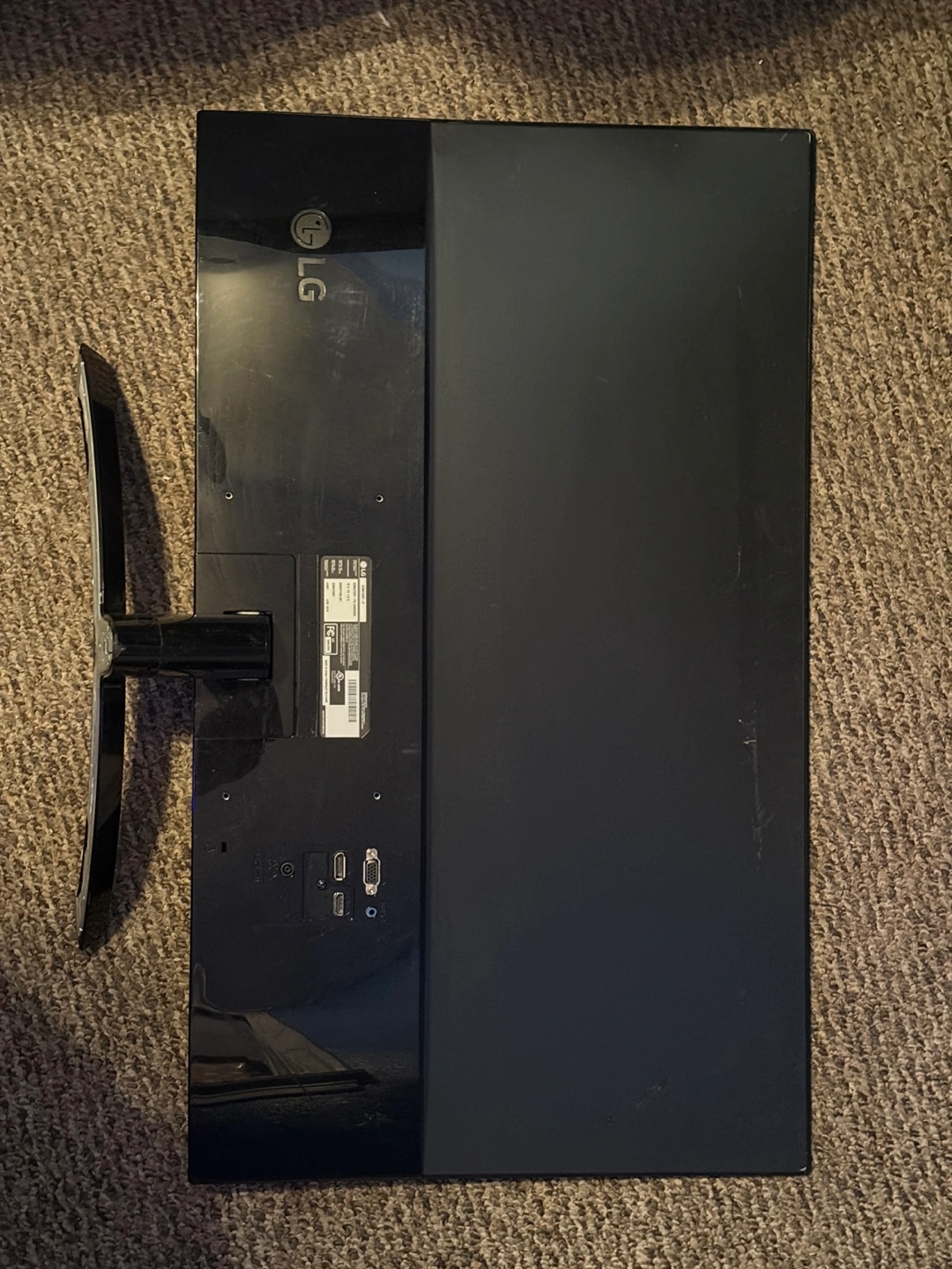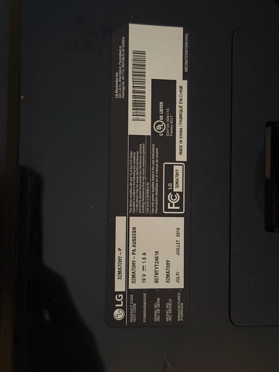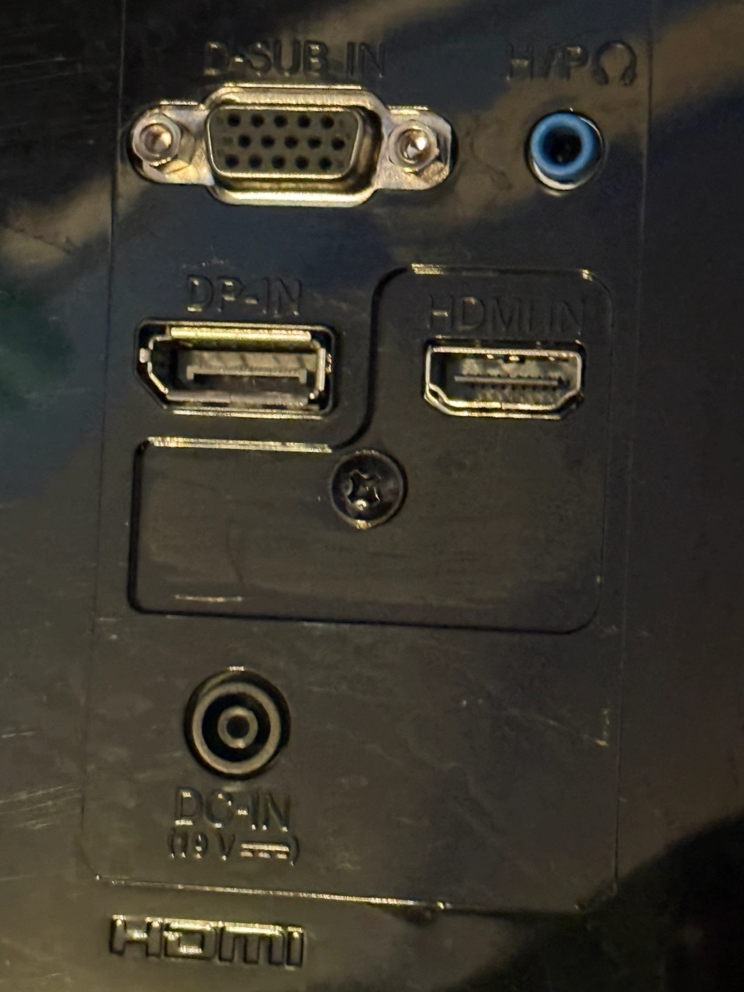 123LG 32-inch monitor comes with a power cable and stand. Has HDMI, VGA, and Displayport. NO HDMI OR DISPLAY PORT CABLES INCLUDED.